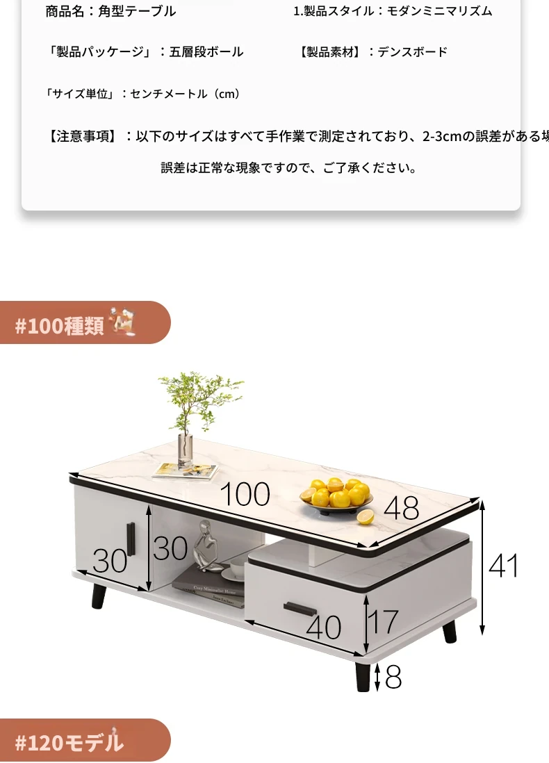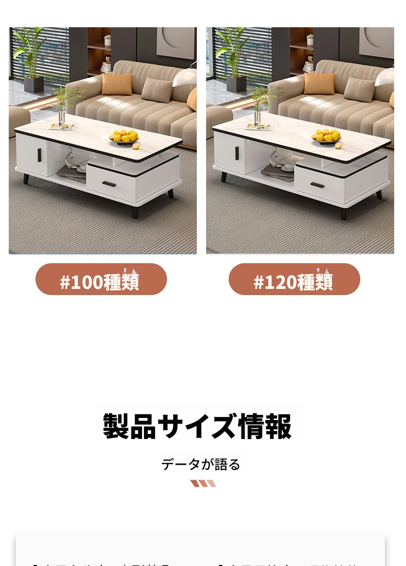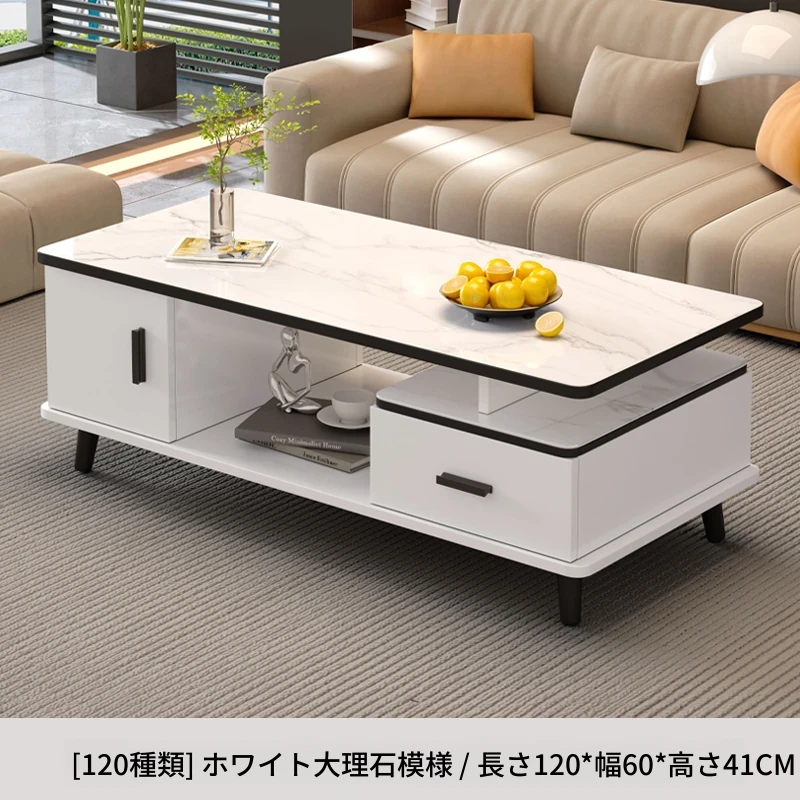 【一抽一柜】120ホワイト大理石色 取り付け込み