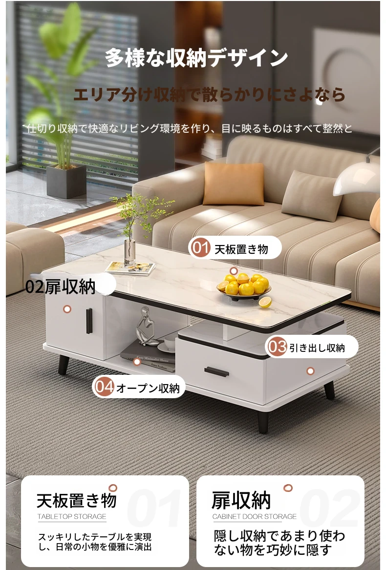 【一抽一柜】100ホワイト大理石色 取り付け込み