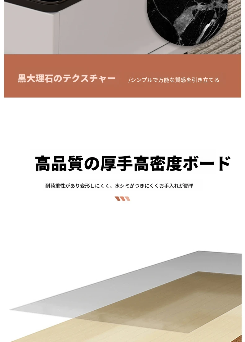 【一抽一柜】100ブラック大理石色 取り付け込み