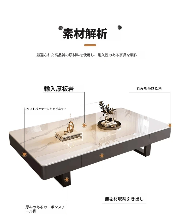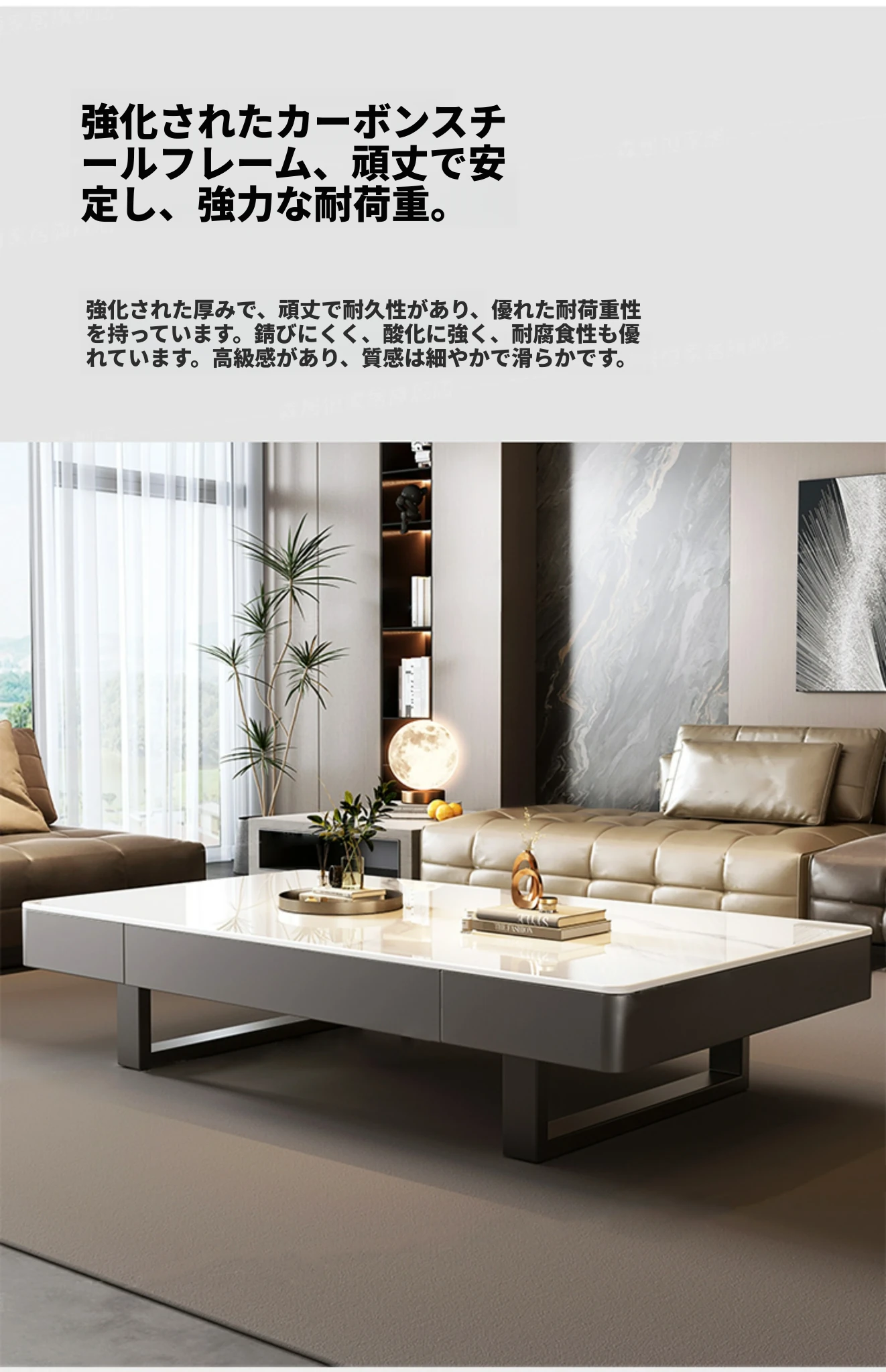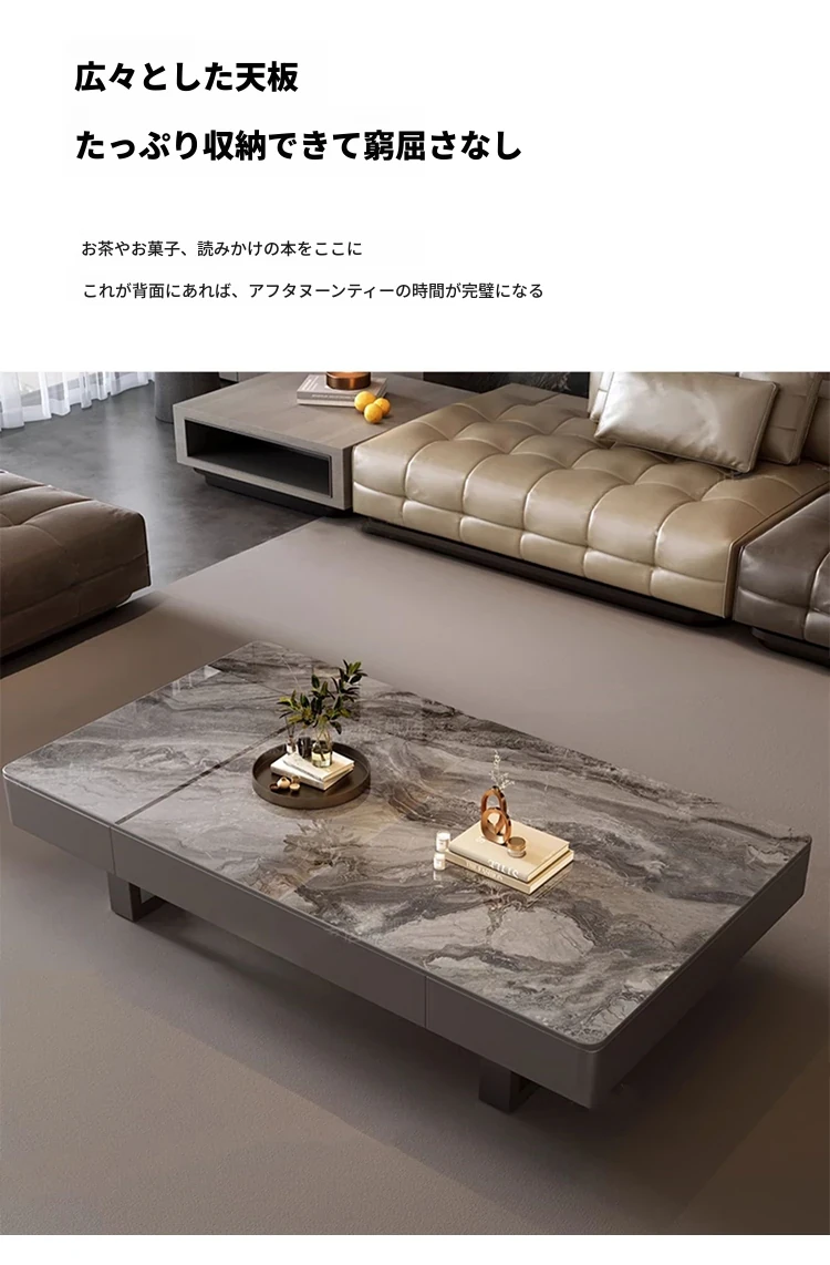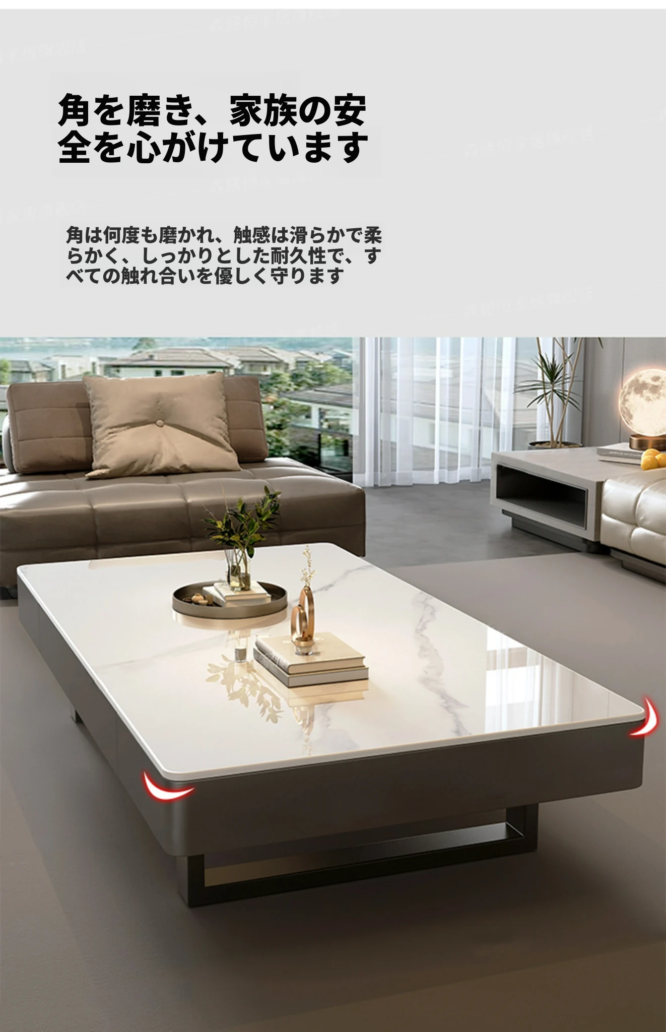 高級感あふれる新作!2025年版の軽奢スタイル・岩板製スクエア大理石コーヒーテーブル。小型住宅に最適な洗練されたデザインで、リビングルームをスタイリッシュに演出します。