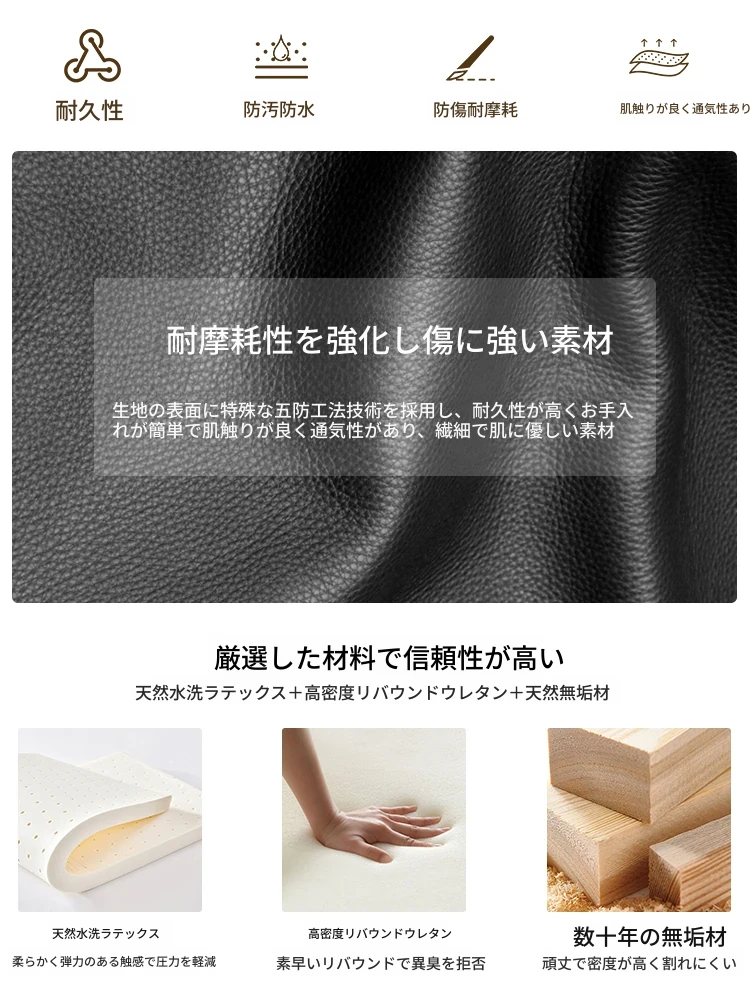 トップグレインレザー【4CMラテックス+バンブーチャコールスポンジ】83幅の無垢材封板