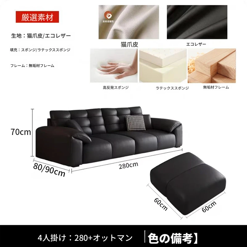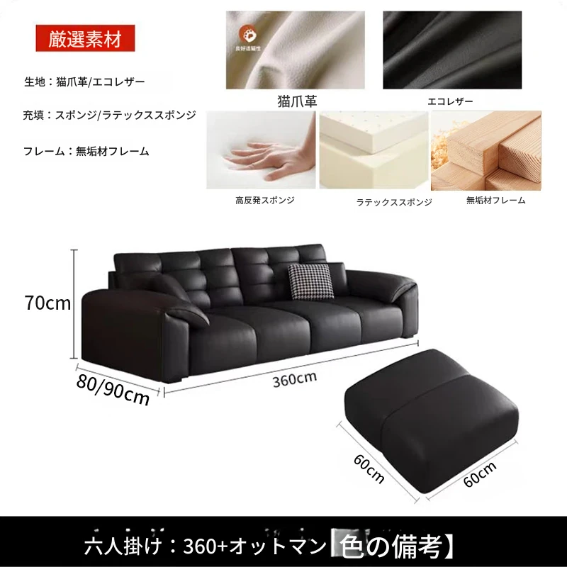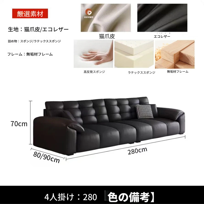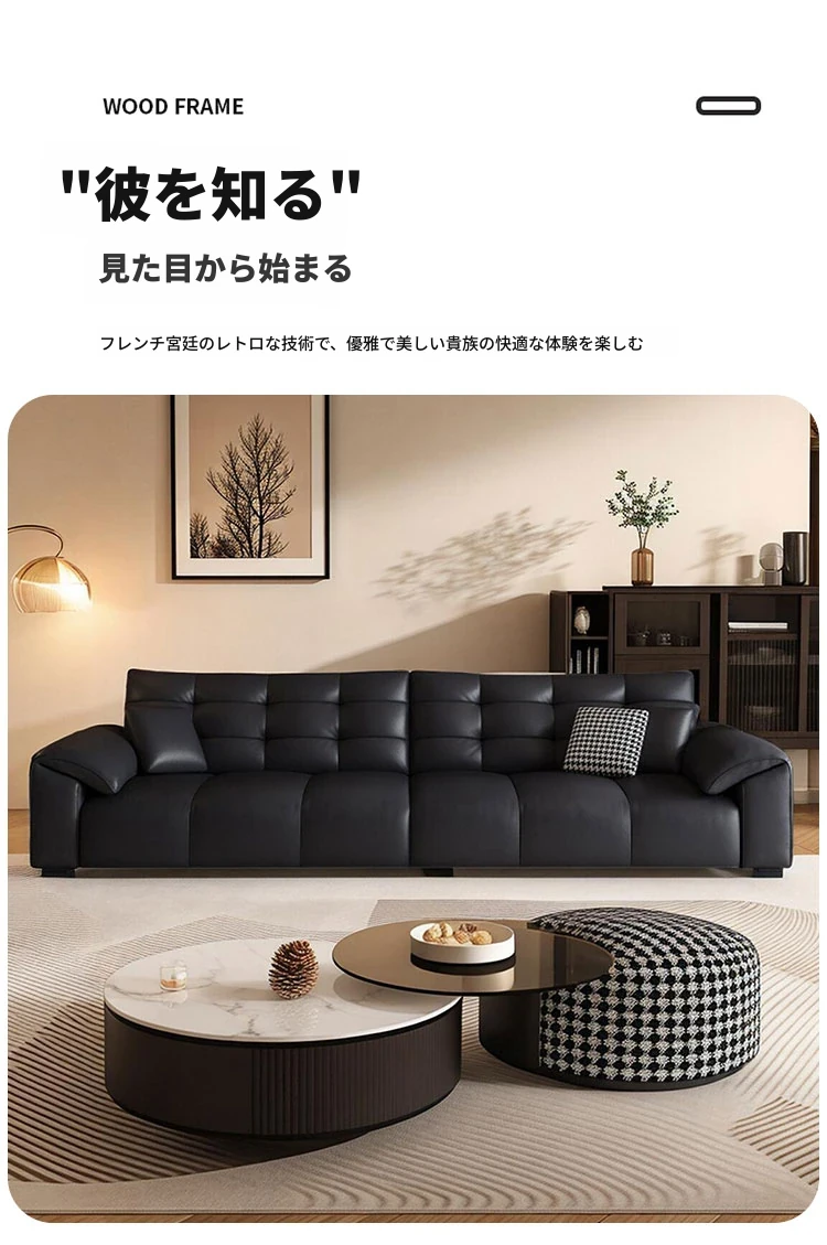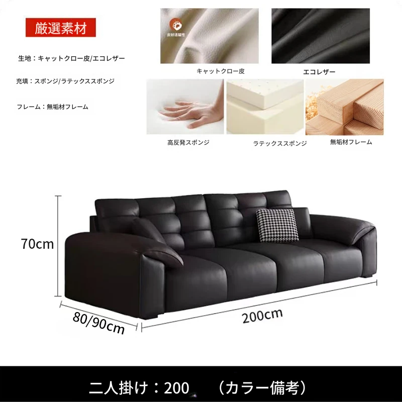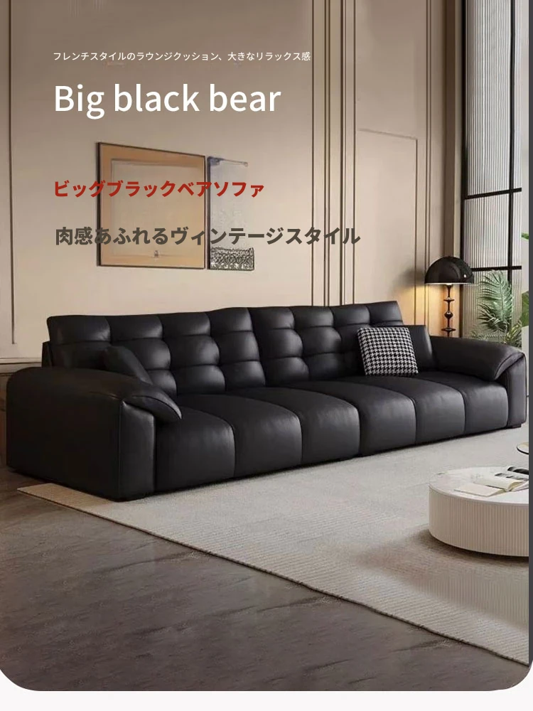 イタリアンミニマリズム2025新作 大黒クマ本革ソファ リビングルームにぴったりなサイズ感 軽やかなラグジュアリー 四人掛け直列タイプ
