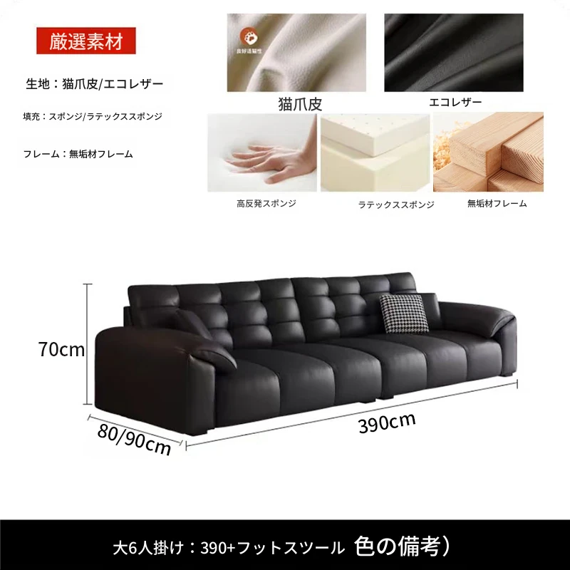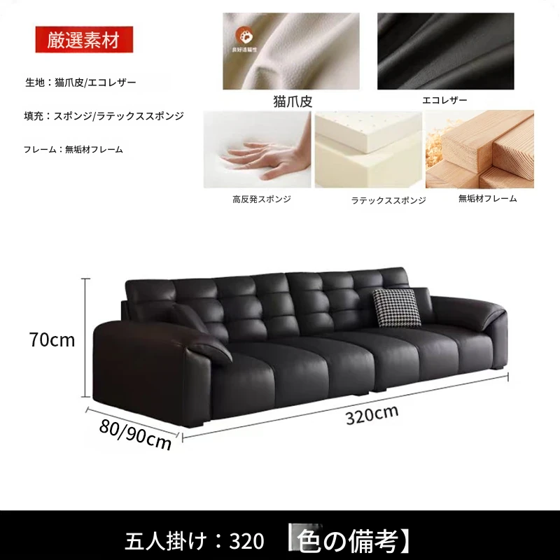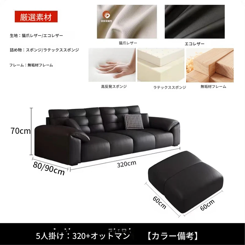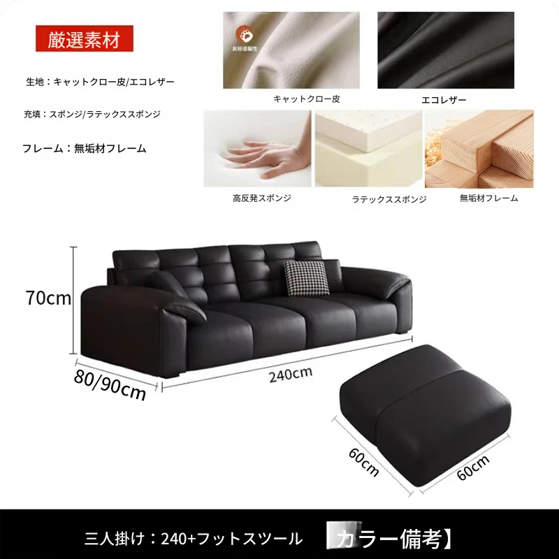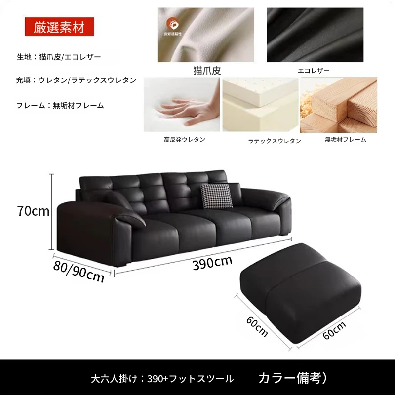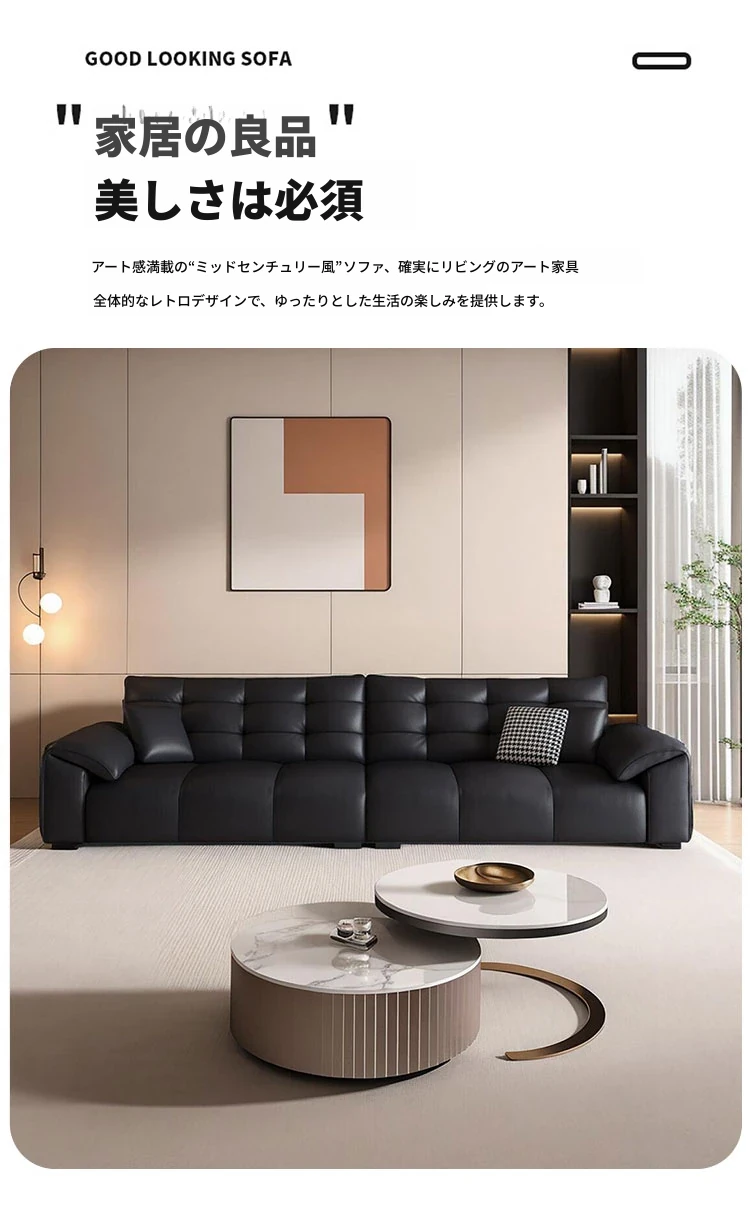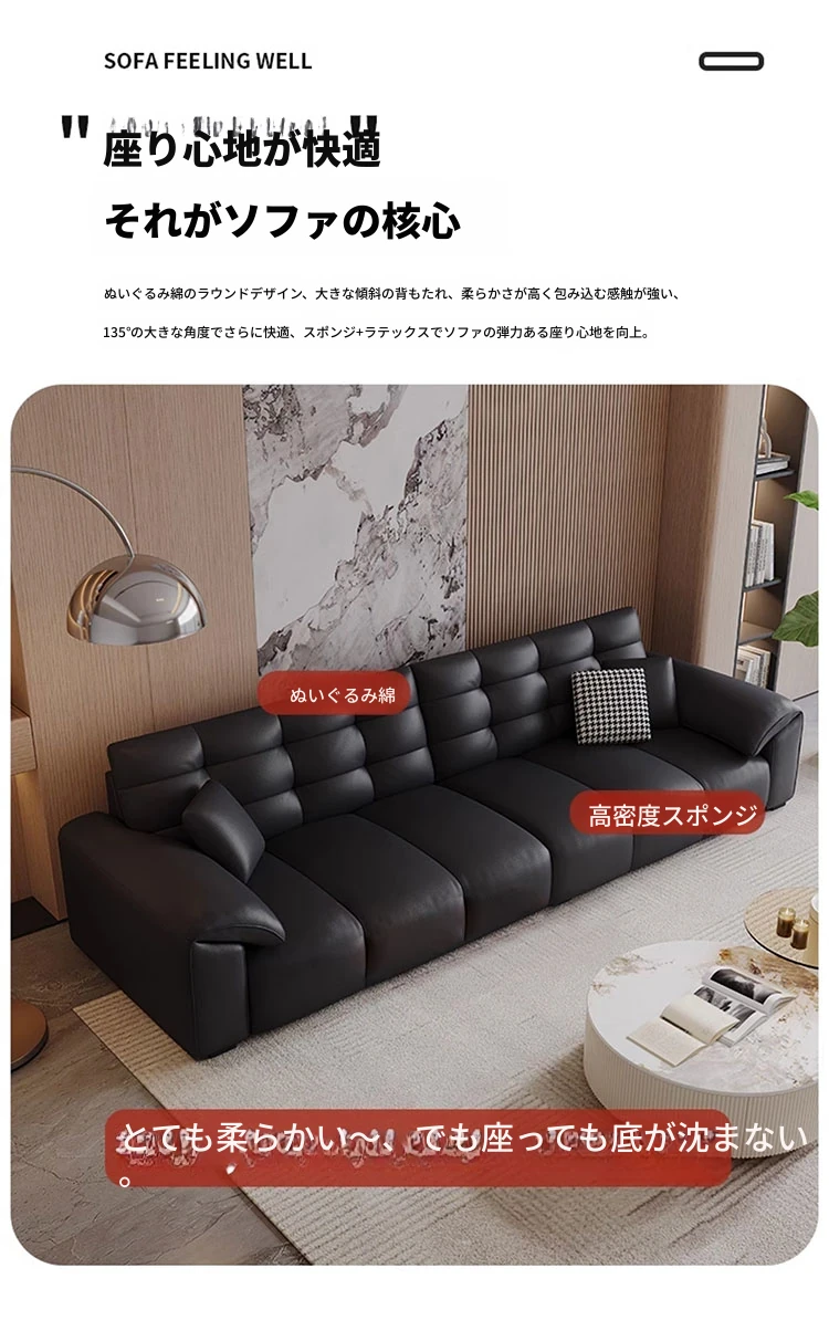イタリアンミニマリズム2025新作 大黒クマ本革ソファ リビングルームにぴったりなサイズ感 軽やかなラグジュアリー 四人掛け直列タイプ