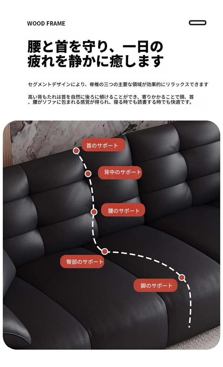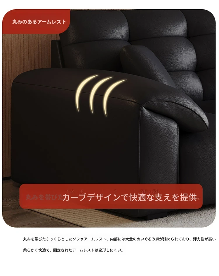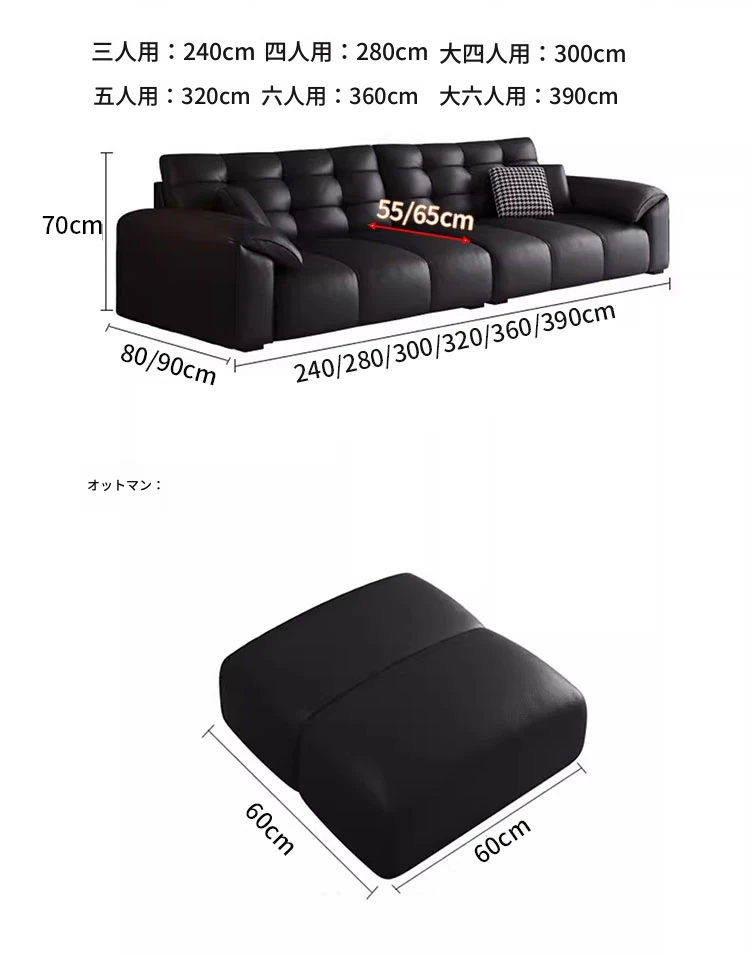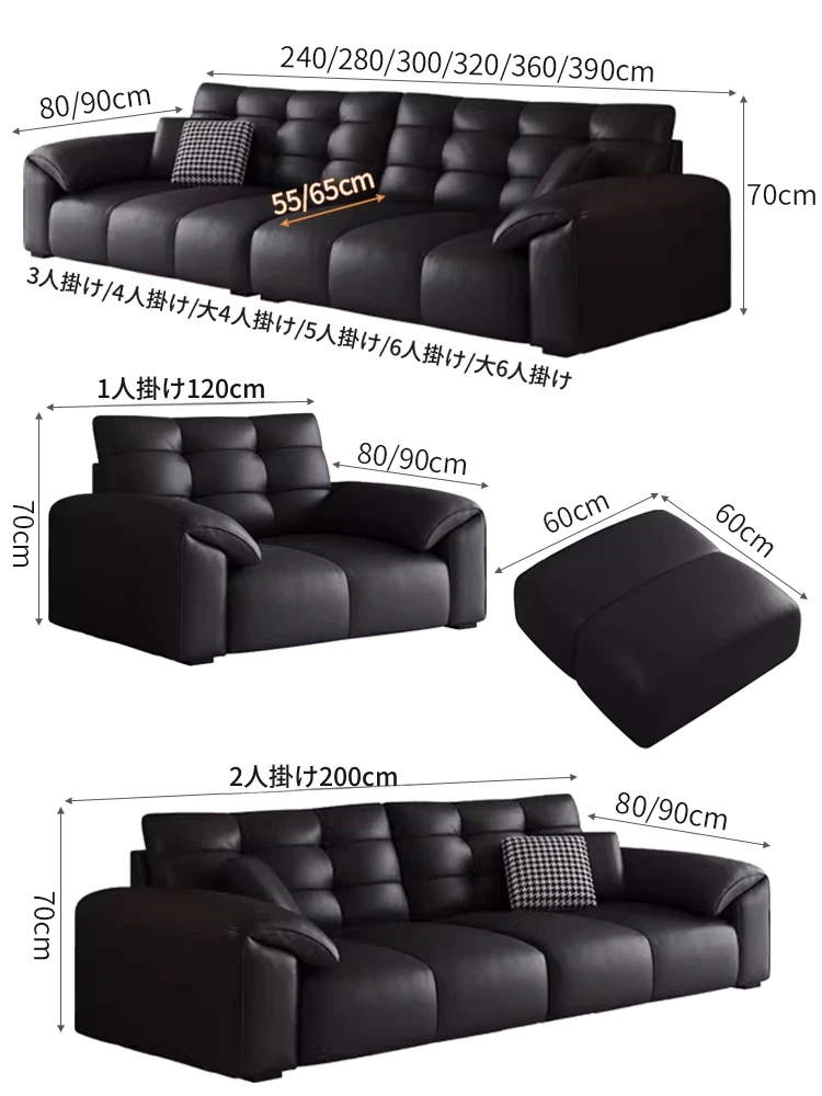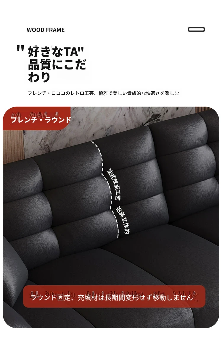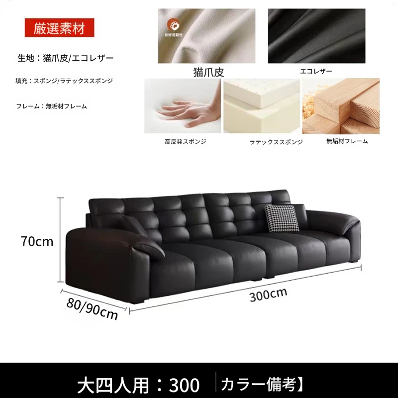 イタリアンミニマリズム2025新作 大黒クマ本革ソファ リビングルームにぴったりなサイズ感 軽やかなラグジュアリー 四人掛け直列タイプ