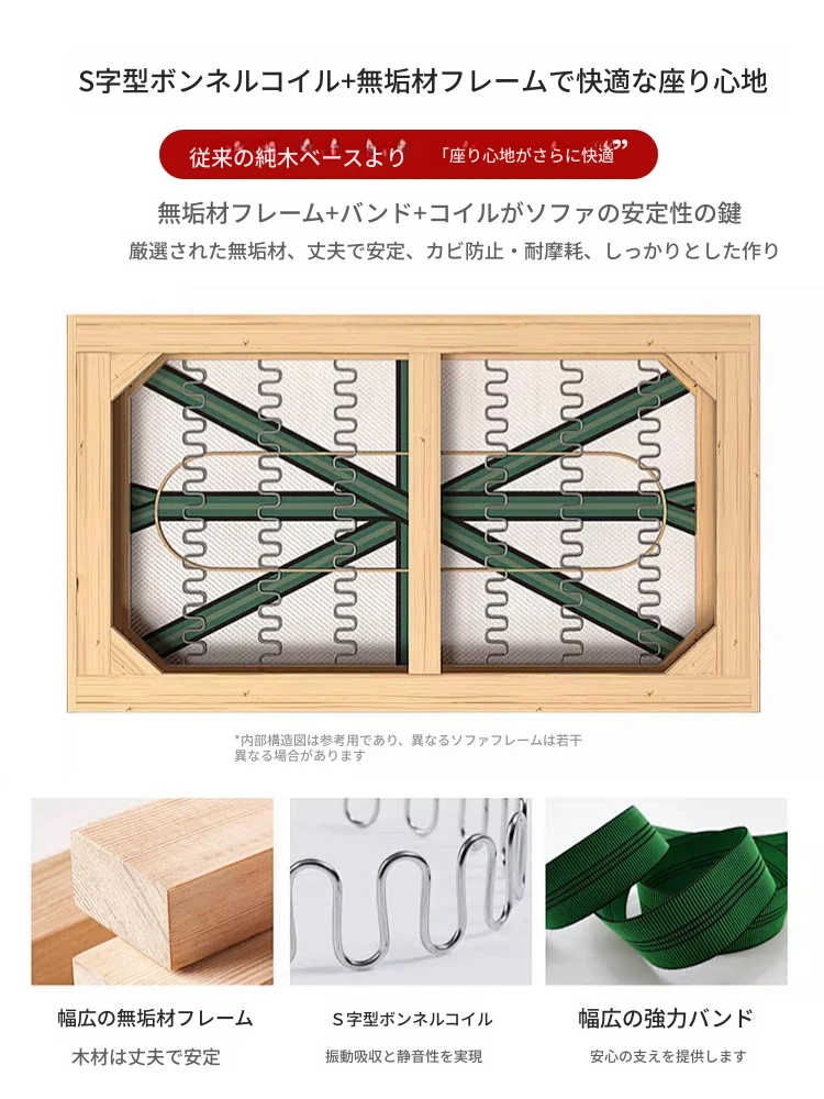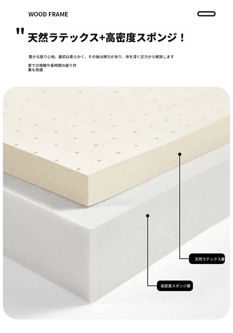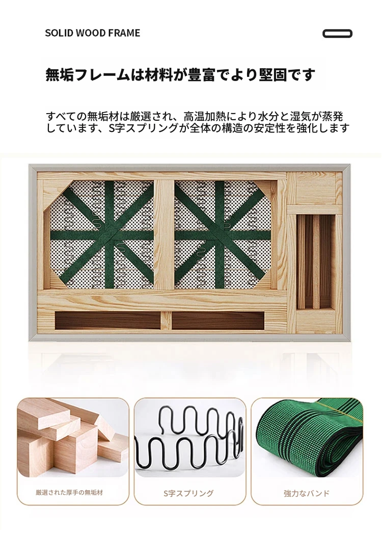 エコレザー【4CMラテックス+竹炭スポンジ】80幅の無垢材封板