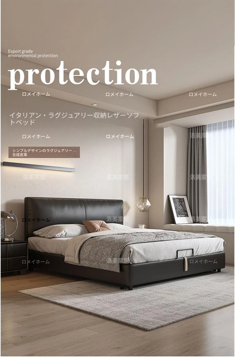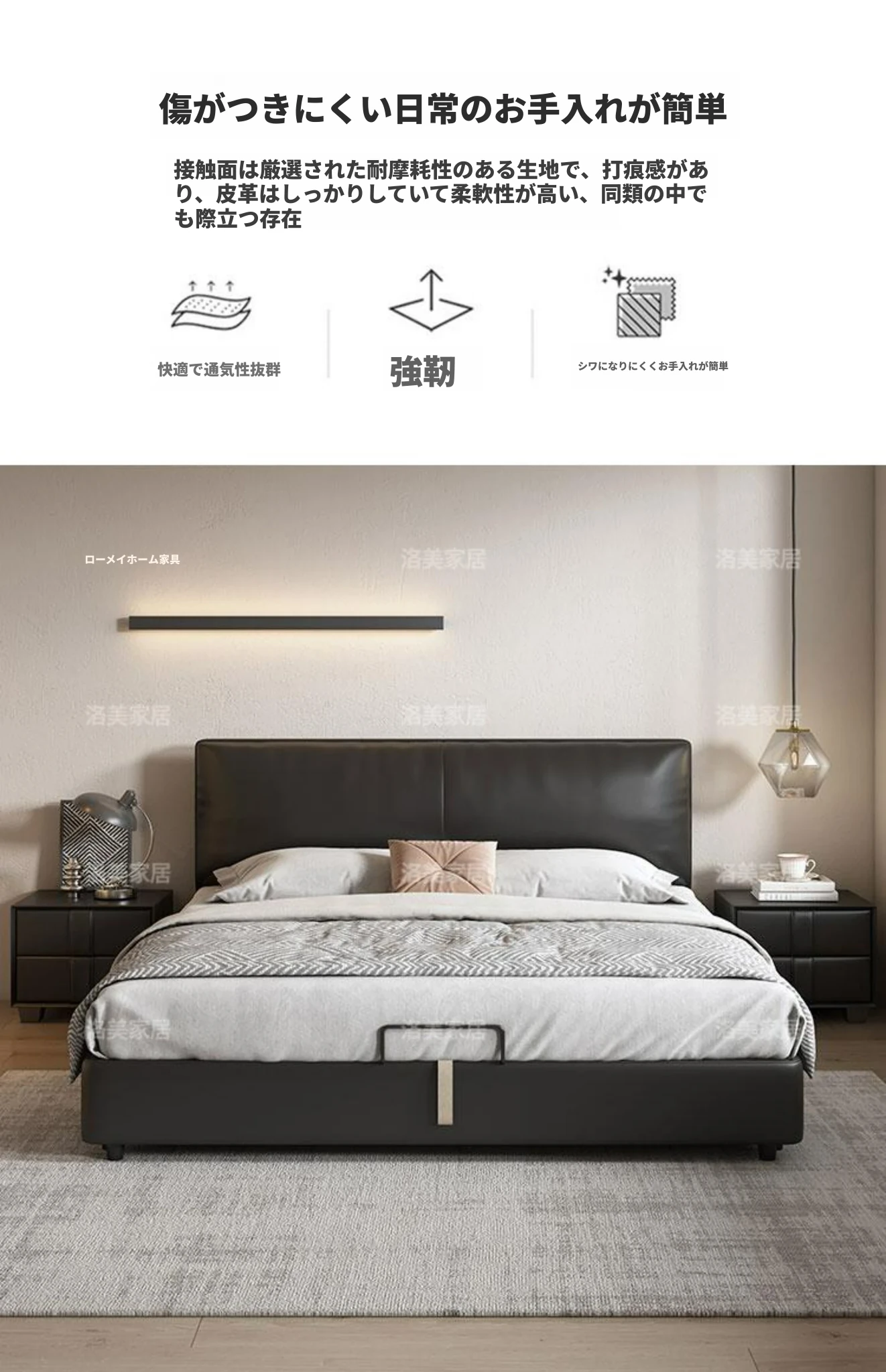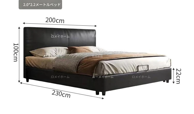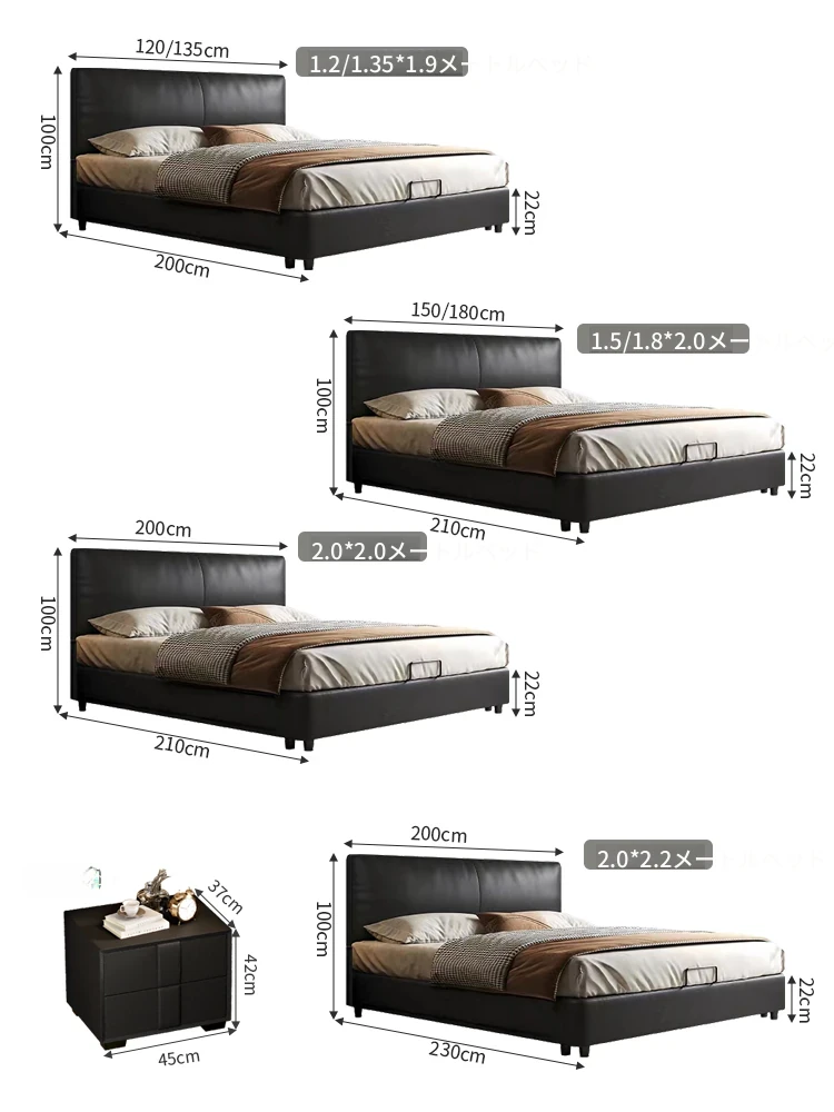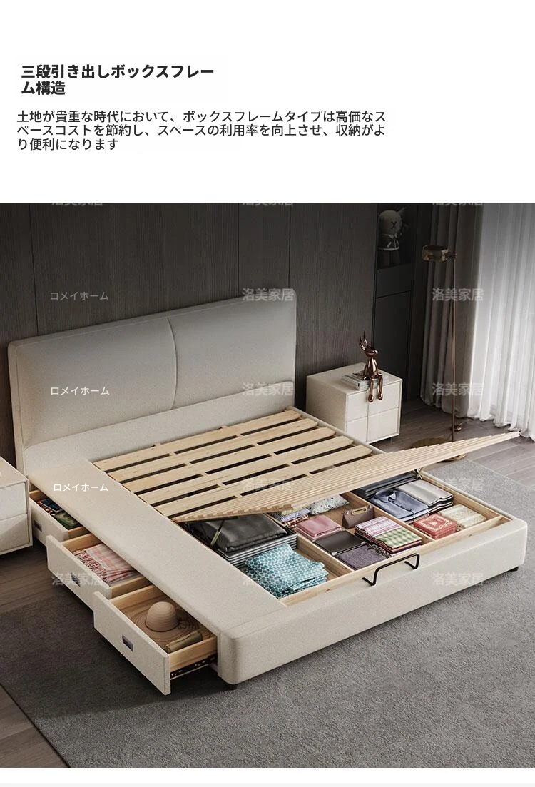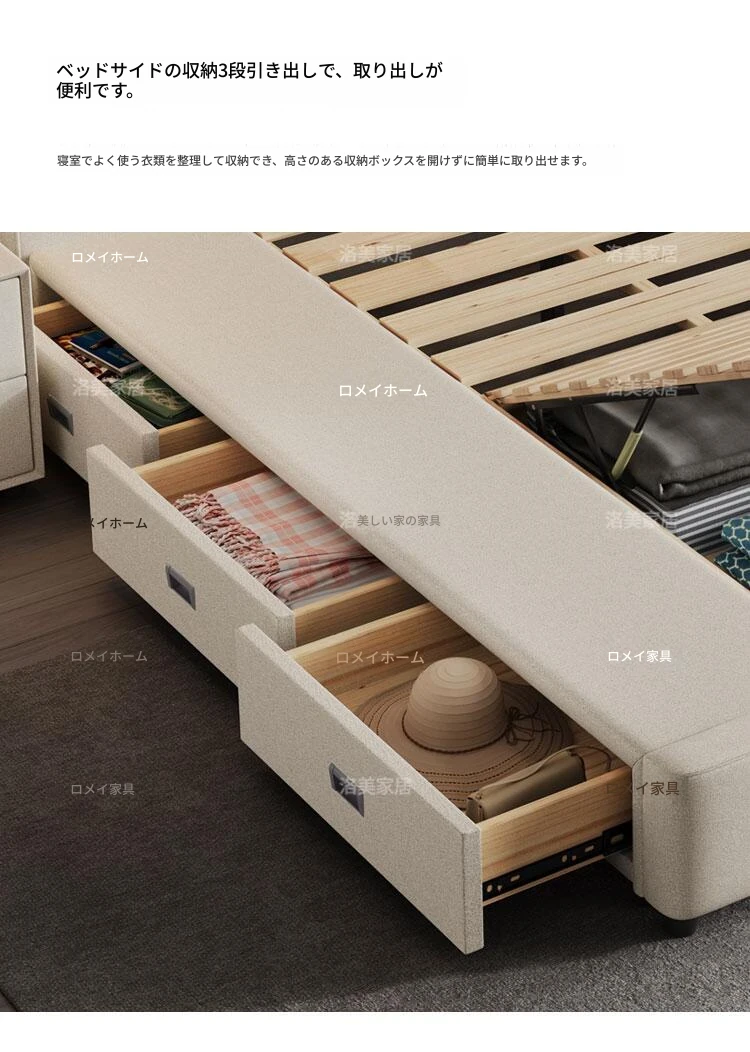 テクノロジー布製ベッド+冬夏兼用9Dラテックスマットレス+2キャビネット