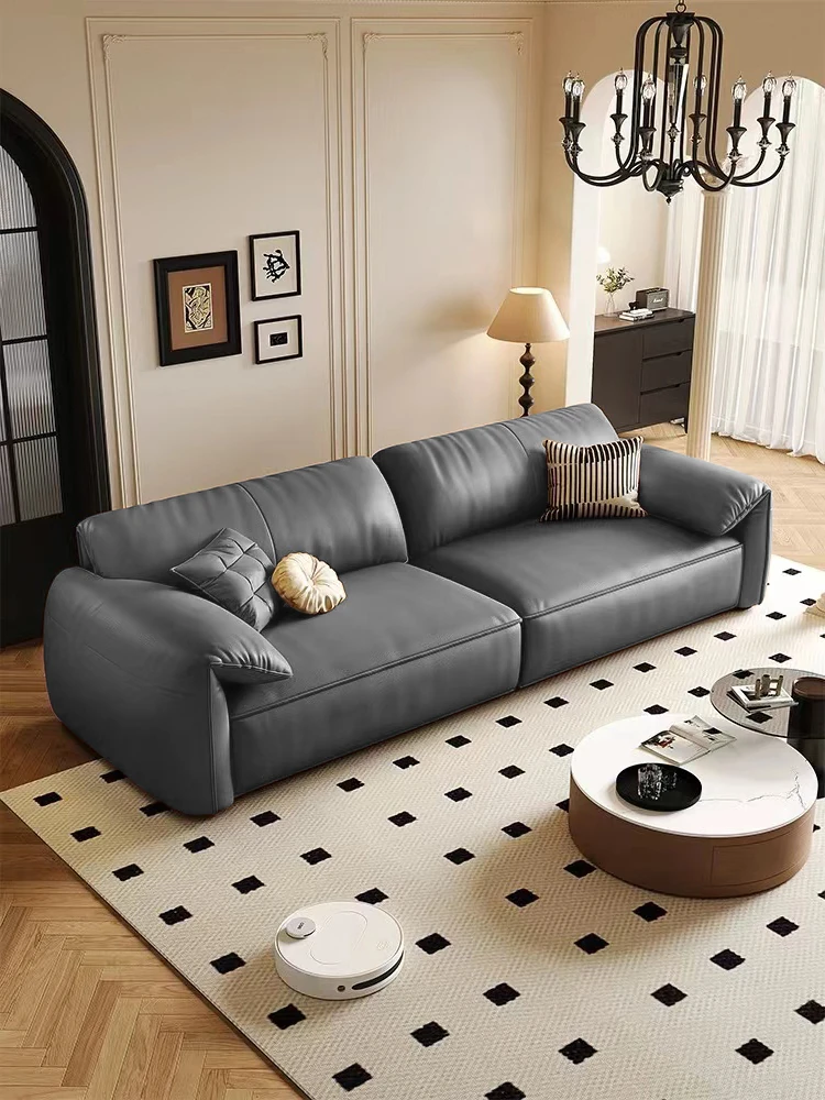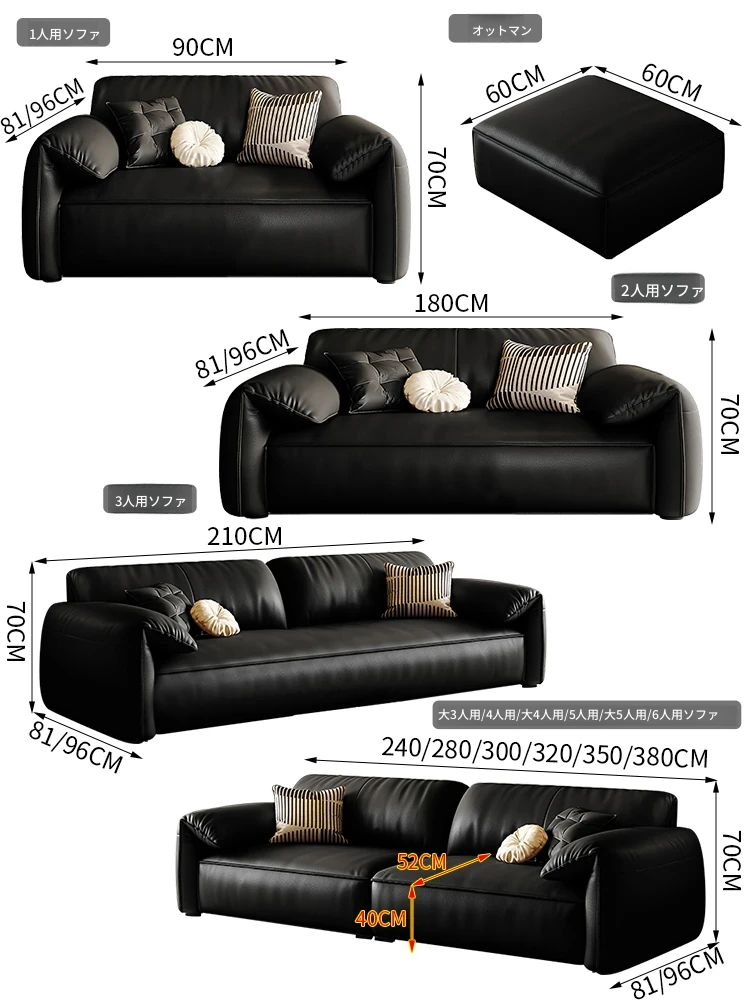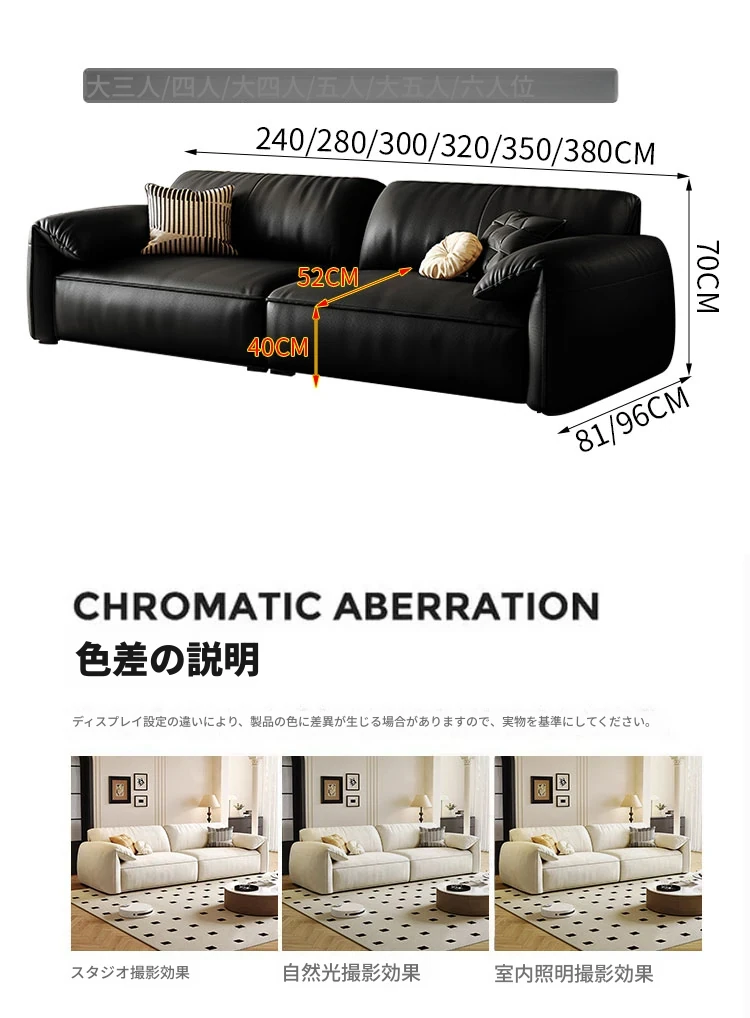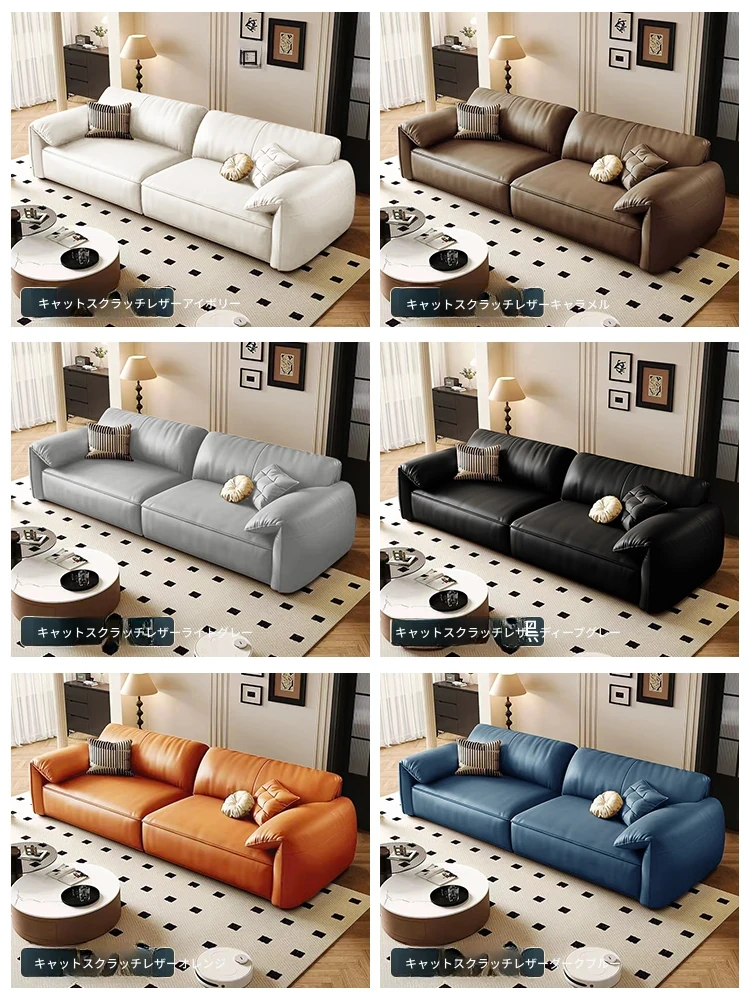 イタリアンミニマリズムの象耳デザイン!本革製のリビング用ソファ。小型住宅にも最適なモダンでシンプルな超広座面・深座りの3人掛けソファ。心地よい座り心地で、洗練された空間を演出します。