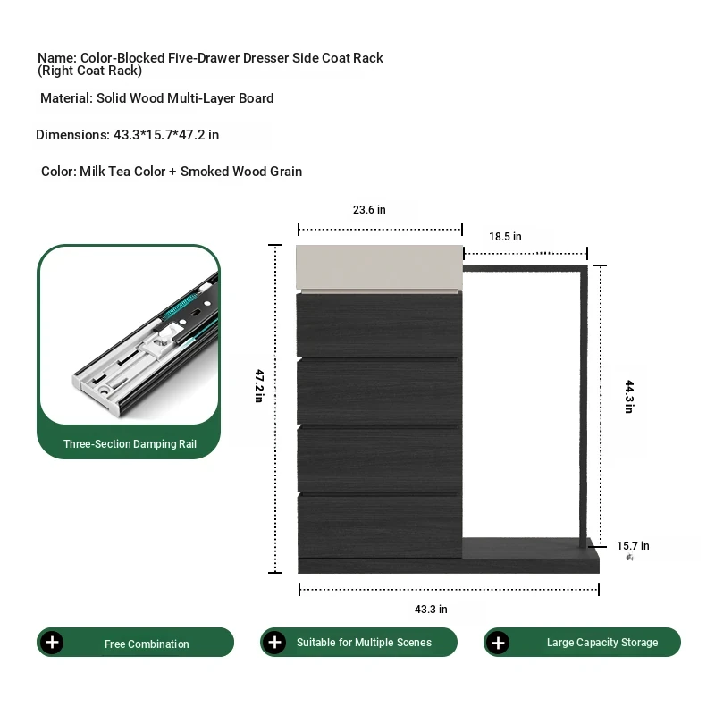 (右)コートハンガー引き出し@ミルクティー色+スモークウッド柄 総長1.1メートル