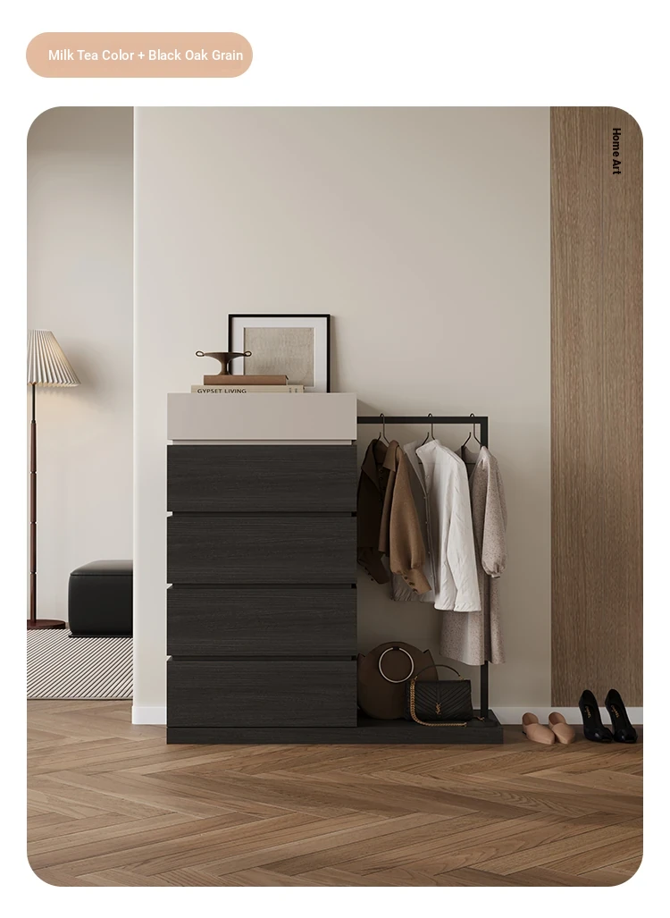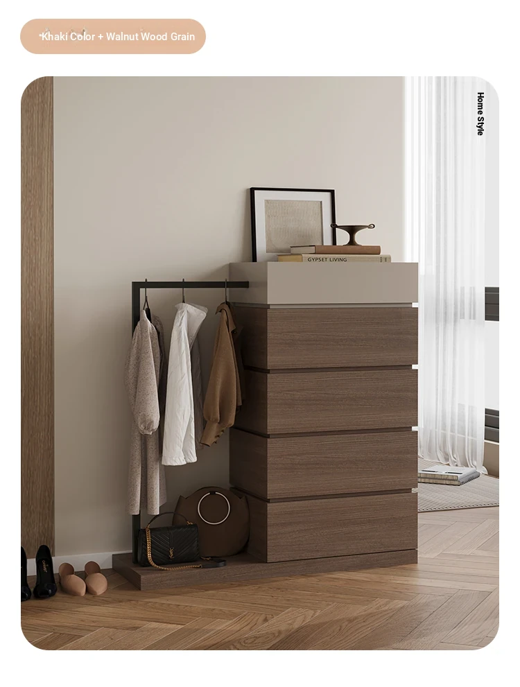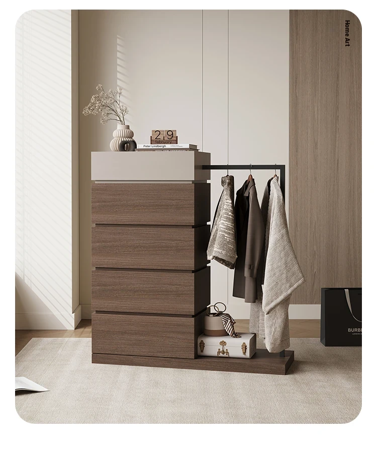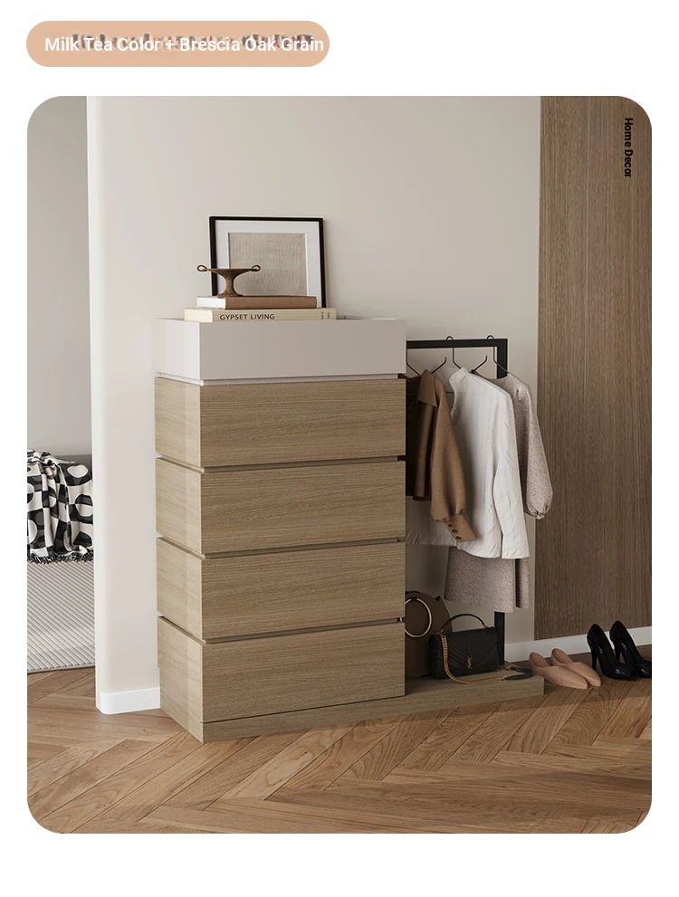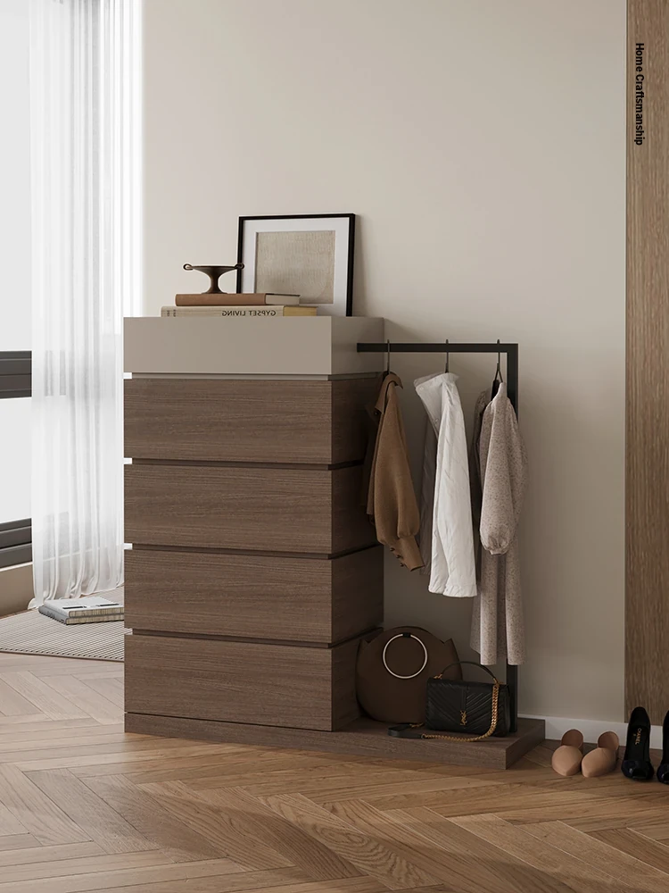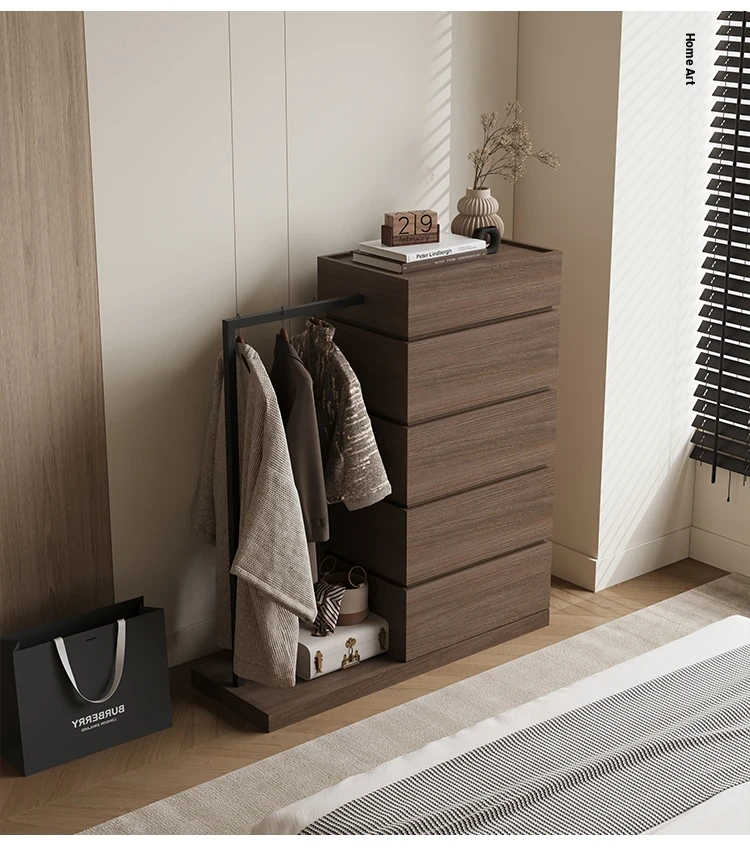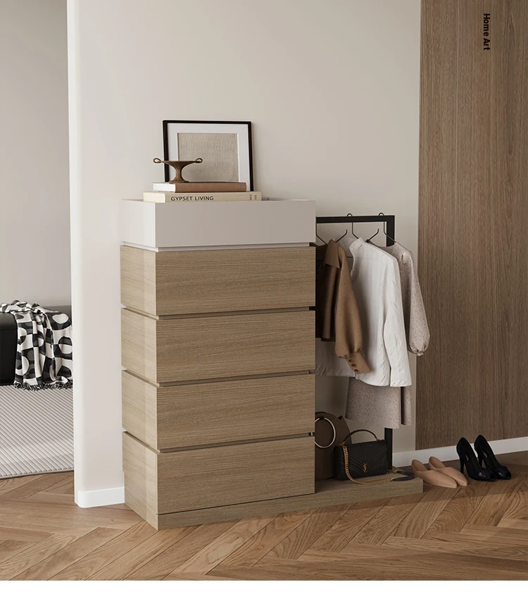 イタリアンミニマルデザインの衣服&帽子ラック一体型チェスト - 小スペースに最適なベッドサイド収納ラック!シンプルでスタイリッシュなデザインで、あなたの寝室を洗練された空間に演出します。