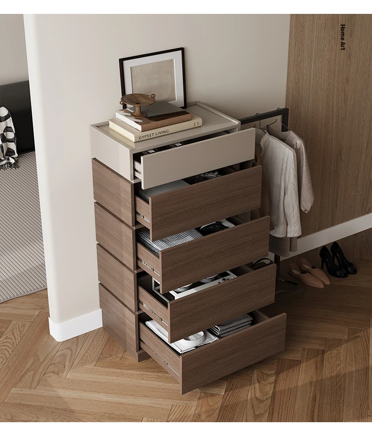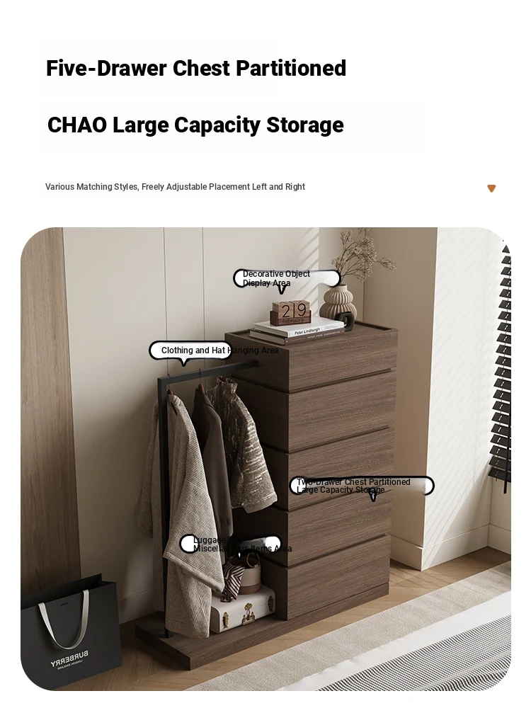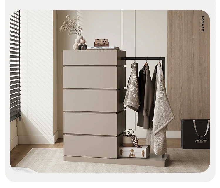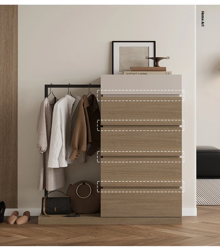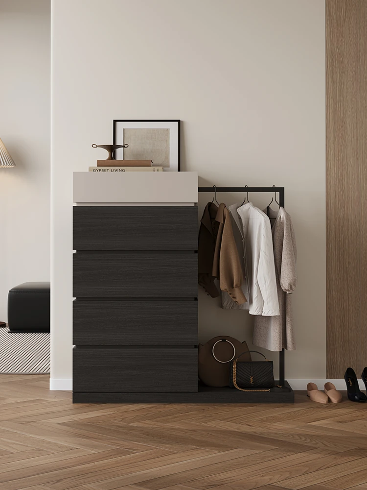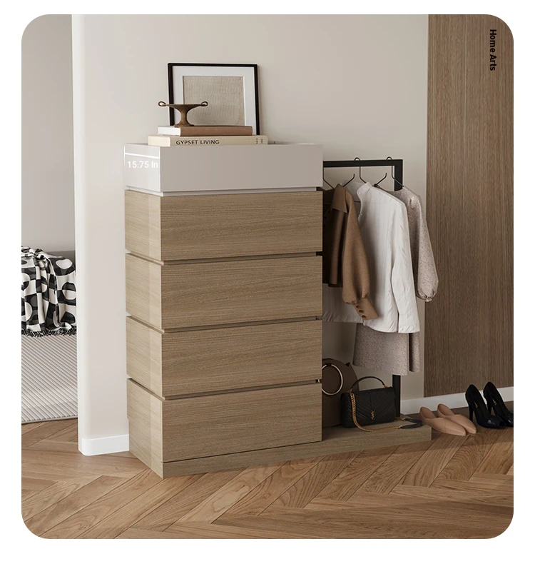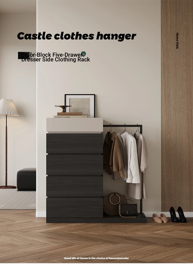 イタリアンミニマルデザインの衣服&帽子ラック一体型チェスト - 小スペースに最適なベッドサイド収納ラック!シンプルでスタイリッシュなデザインで、あなたの寝室を洗練された空間に演出します。