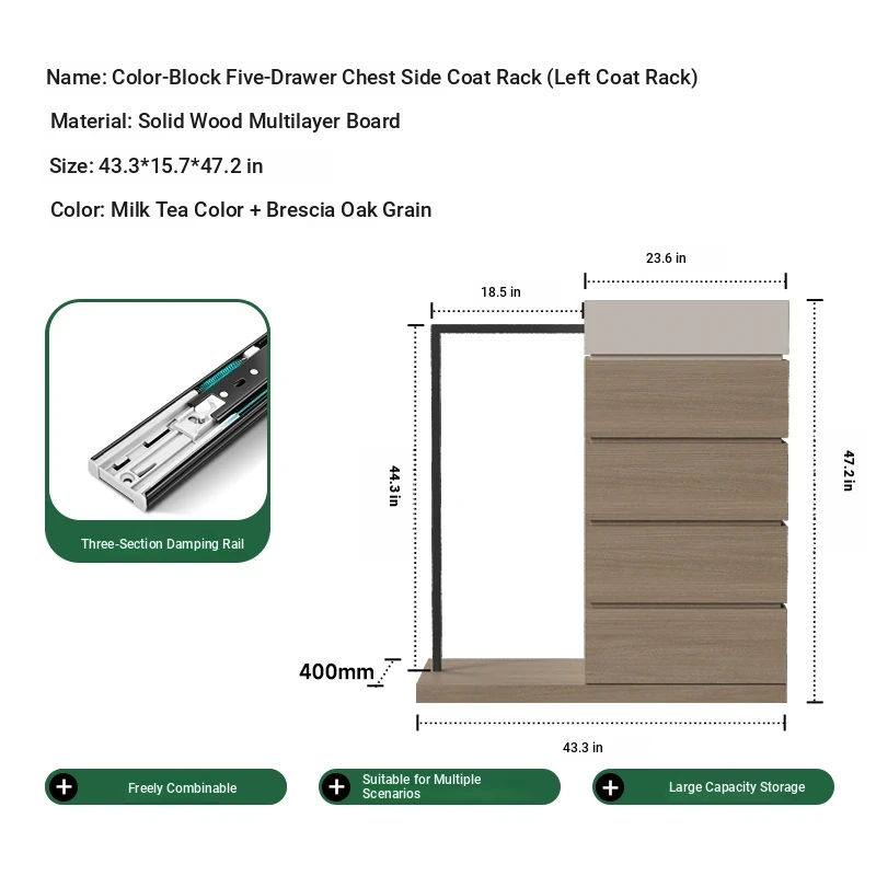 (左)コートハンガー引き出し@ミルクティー色+ブレシアオーク柄 総長1.1メートル
