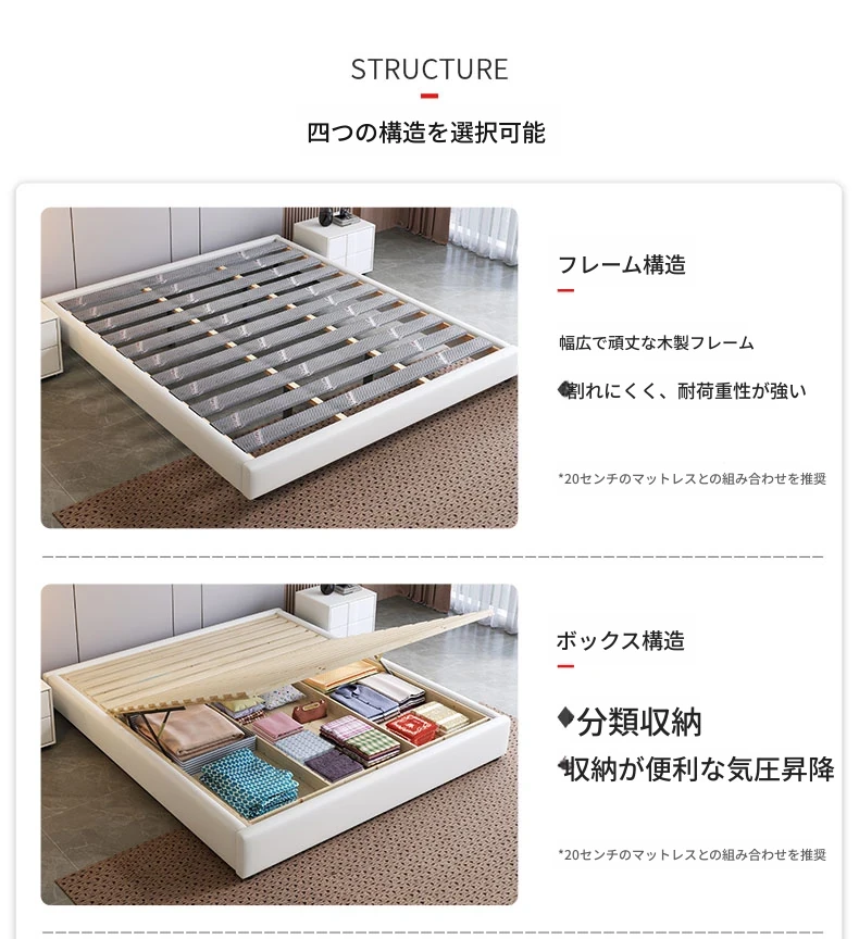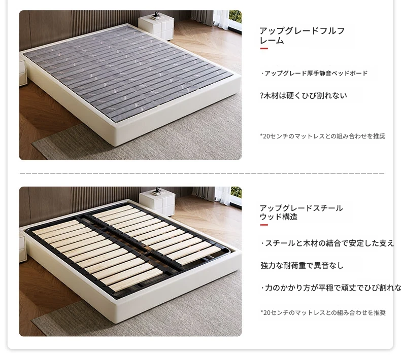 猫抓皮ベッド+カシミヤ独立ポケットマットレス+2キャビネット (生地快適、取り付け込み)
