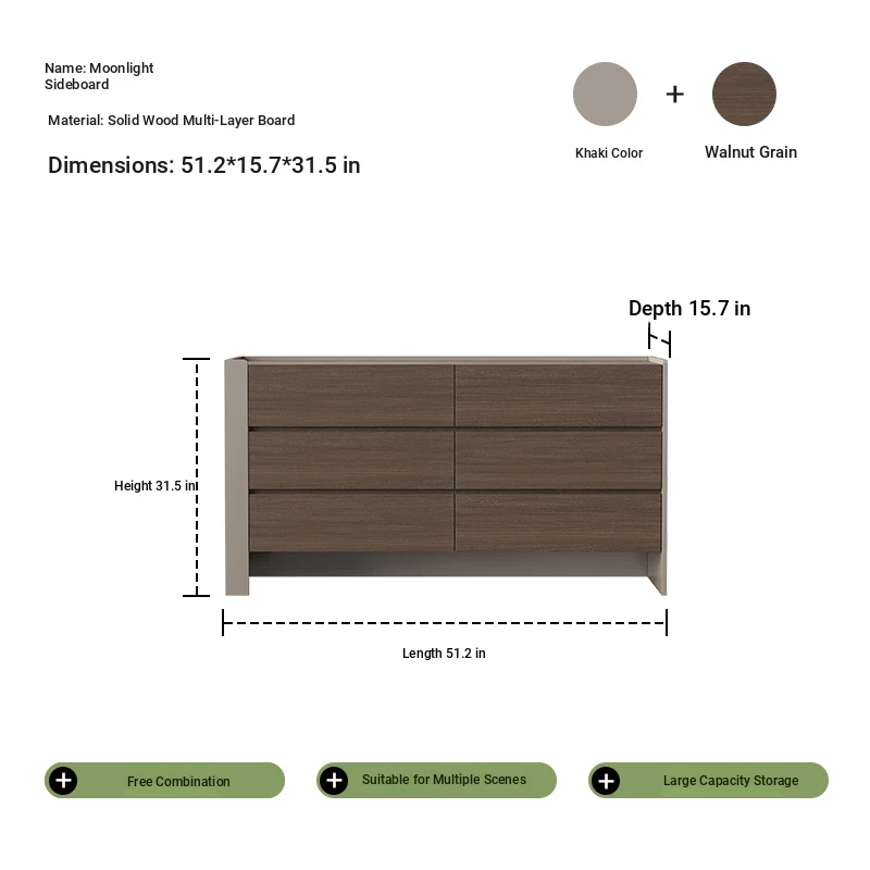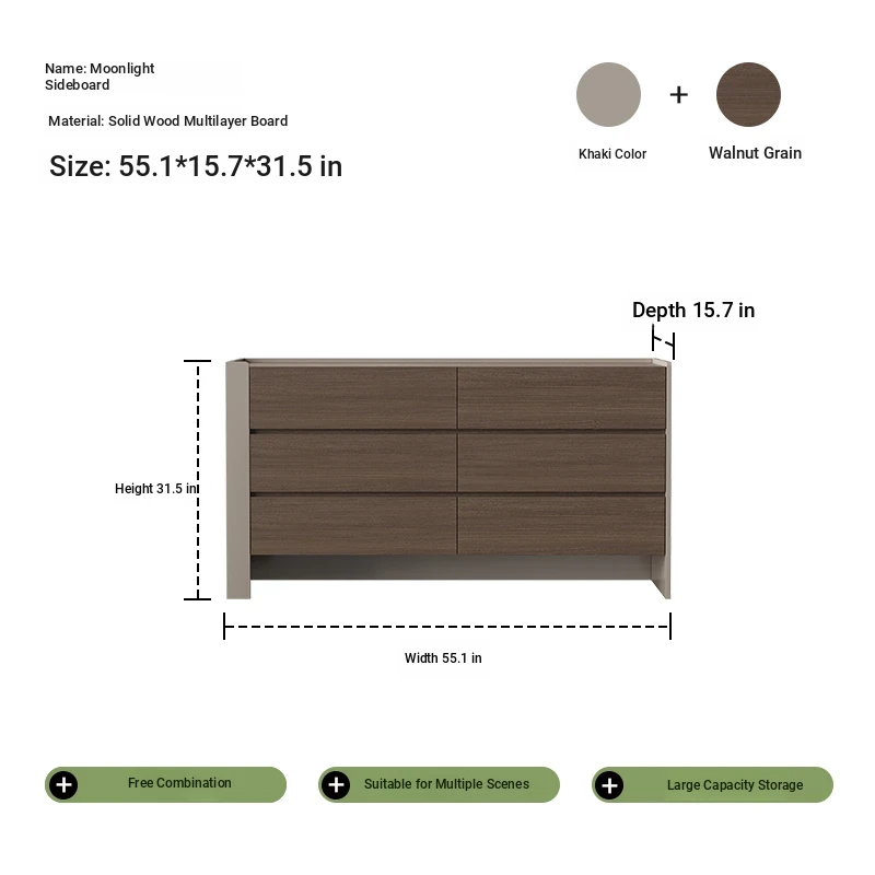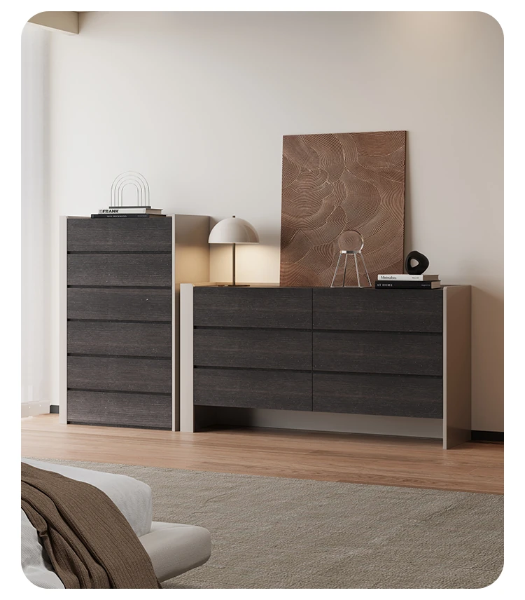 モダンなイタリアンミニマリズムの無垢材8段キャビネット - 玄関、リビング、寝室、ダイニングに最適!おしゃれで機能的な収納ソリューションで、スペースを有効活用しましょう。