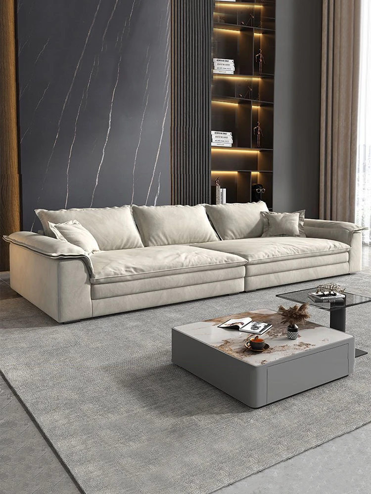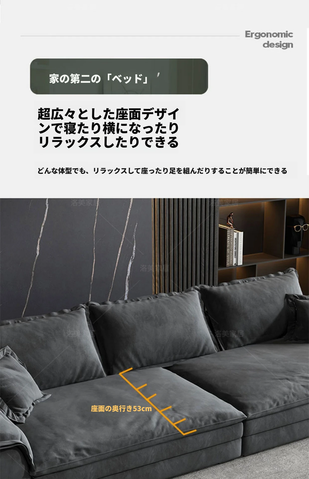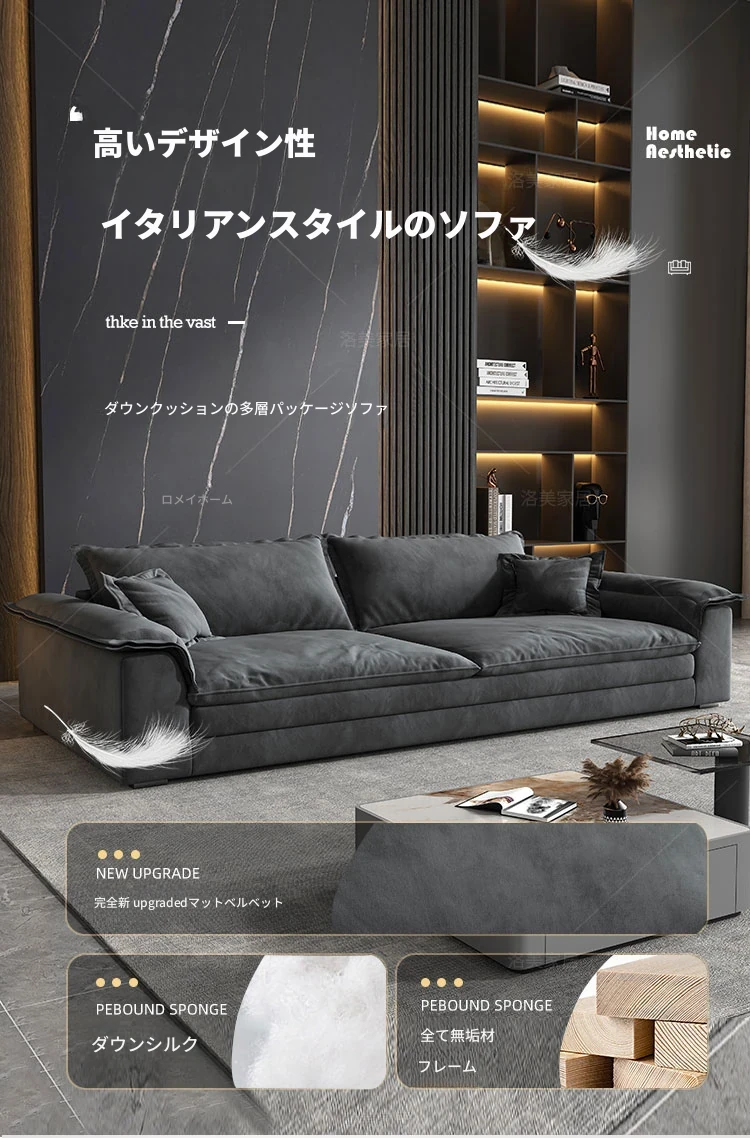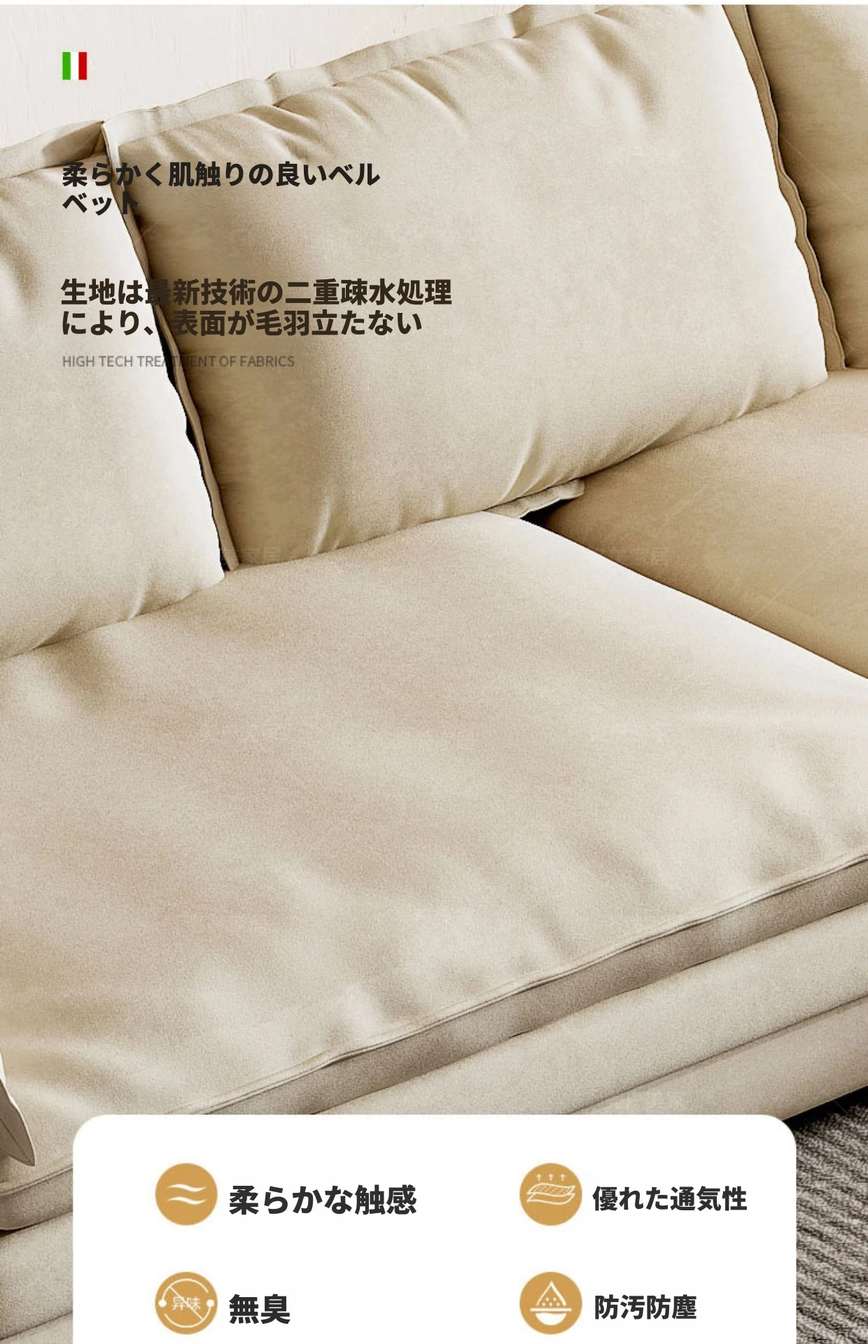 イタリアンミニマルテクスチャー布製リビングソファ|小型住宅に最適なシンプルでモダンなデザイン|ラグジュアリー感あふれるアパート用3人掛けソファ|快適な家族のひとときを提供します