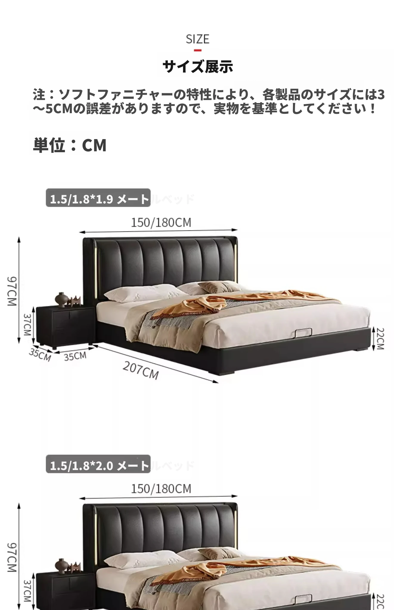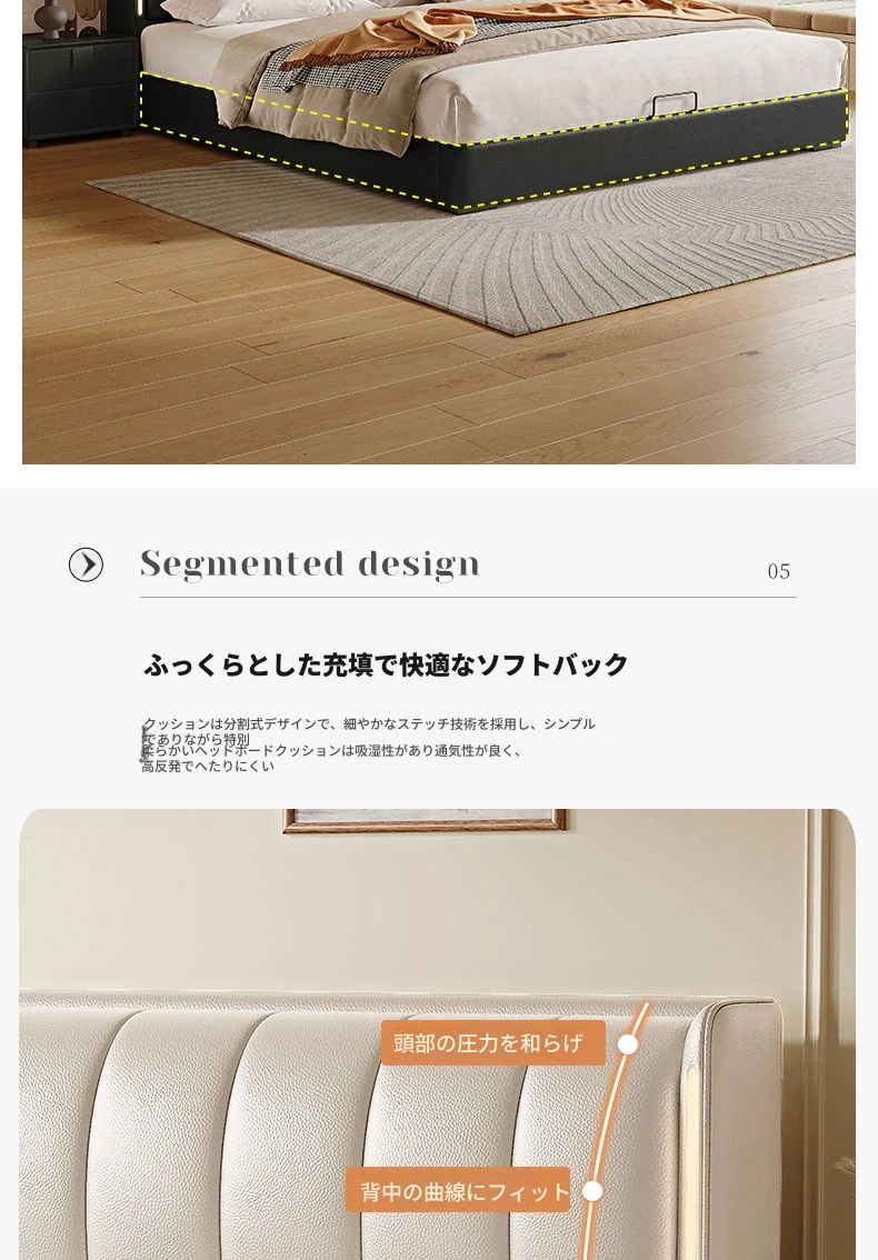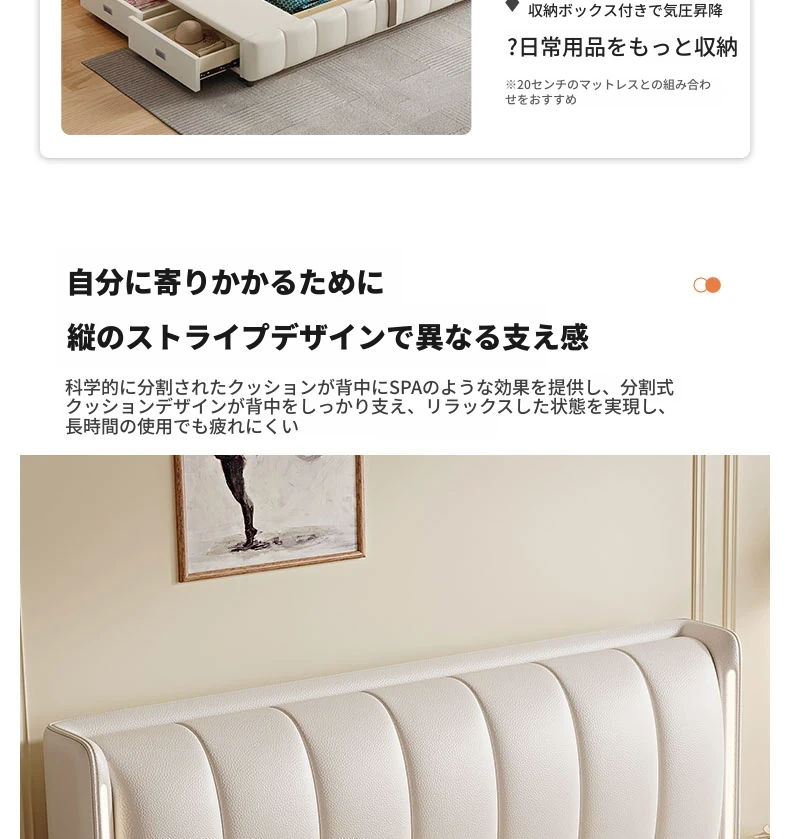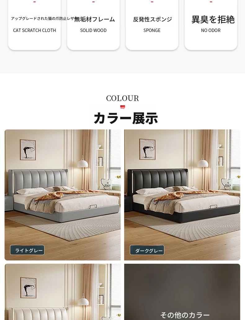 猫抓皮床+9ゾーン5Dラテックスマットレス+2キャビネット