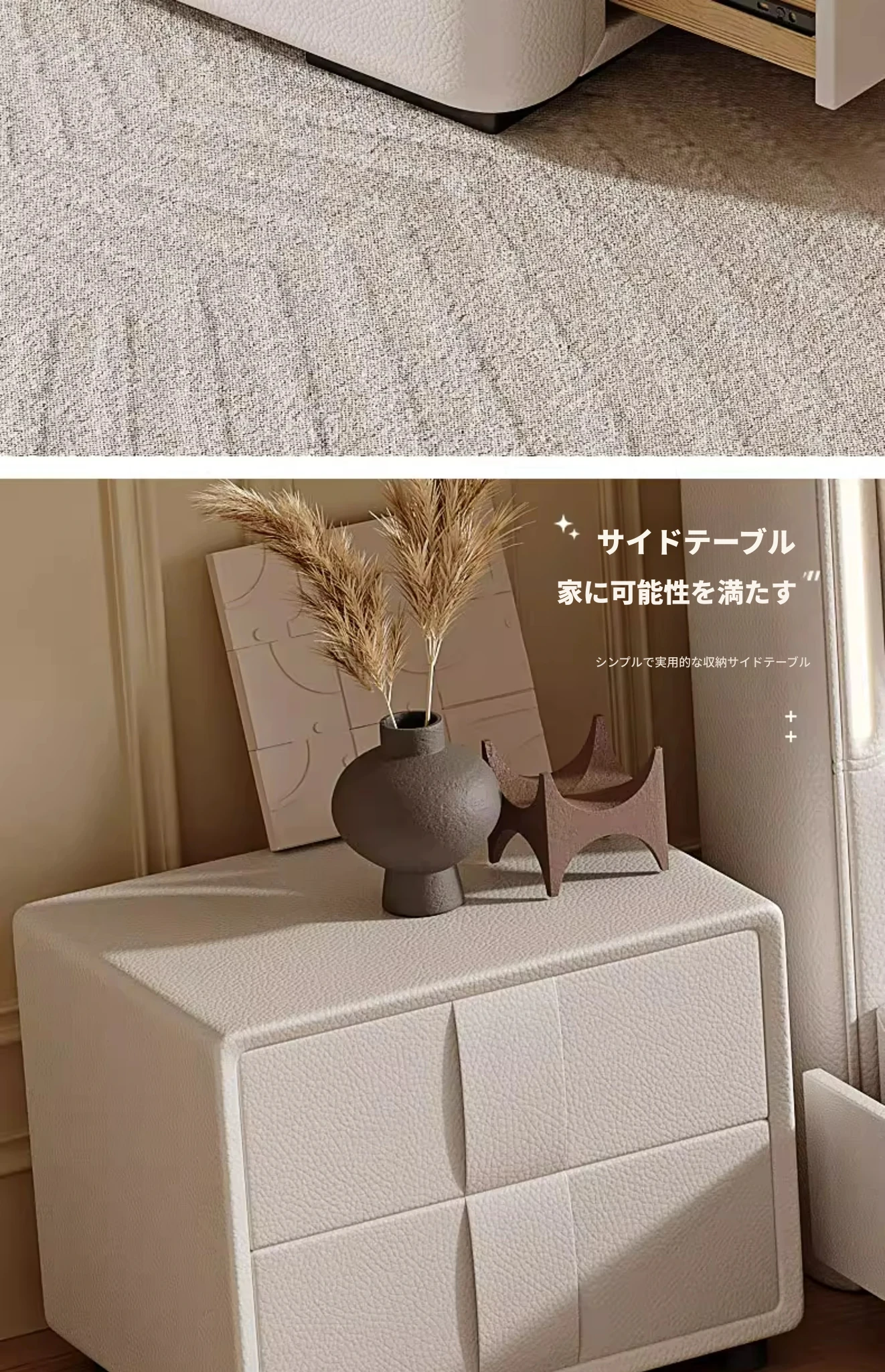 猫抓皮床+冬夏兼用9Dラテックスマットレス+2キャビネット