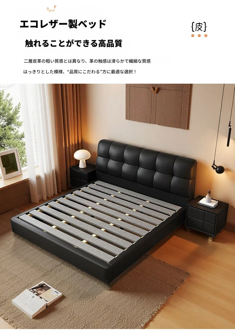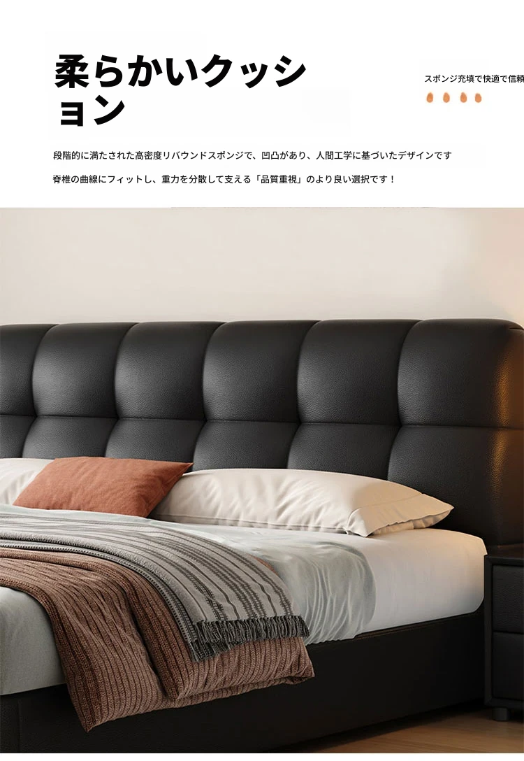 高級感あふれるパフベッド!モダンでシンプルなデザインのダブルベッド、1.5m・1.8mサイズ、上質な本革使用。心地よいソフトパッキングで、特別な婚礼の夜を演出します。あなたの寝室にぴったりの贅沢な選択!