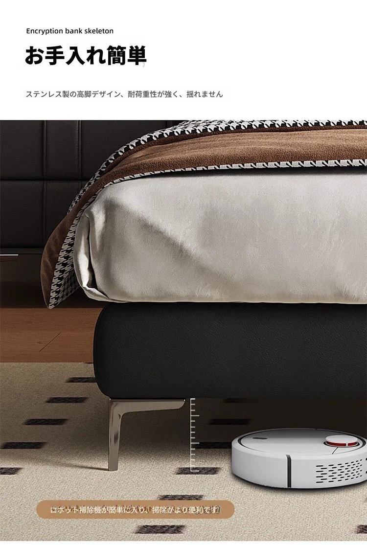 皮ベッド+カシミヤ独立ポケットマットレス+2キャビネット