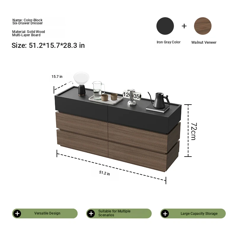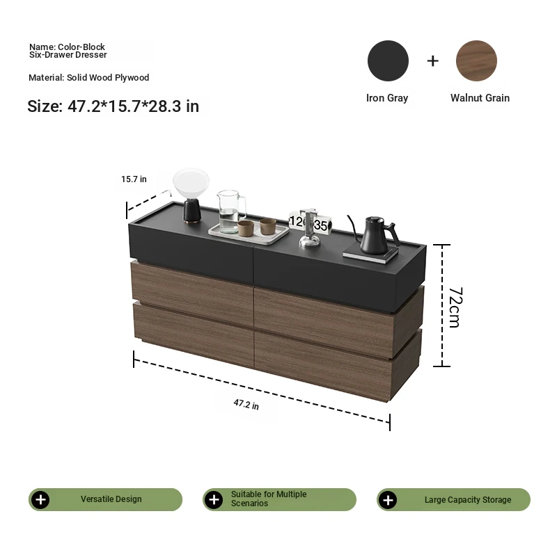 1.2メートル6引き出しチェスト@アイアングレー+ウォールナット木目