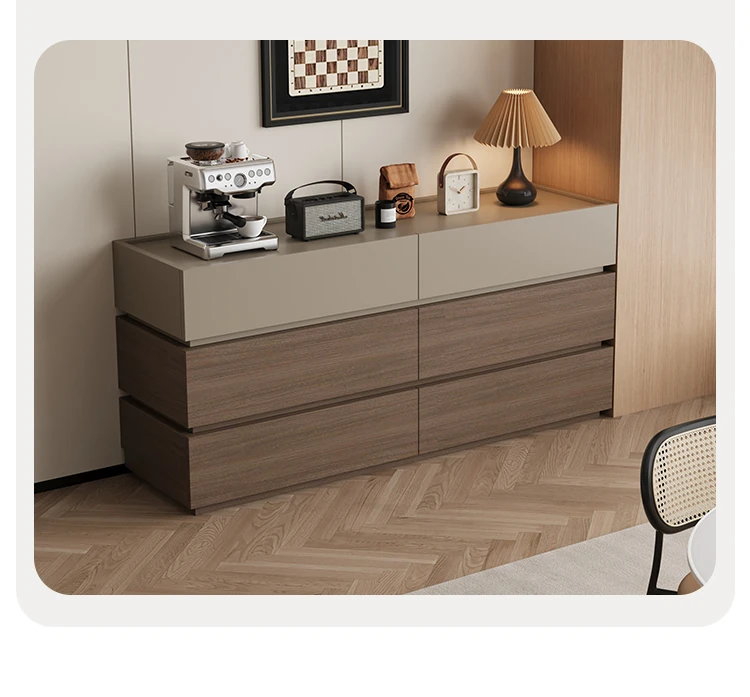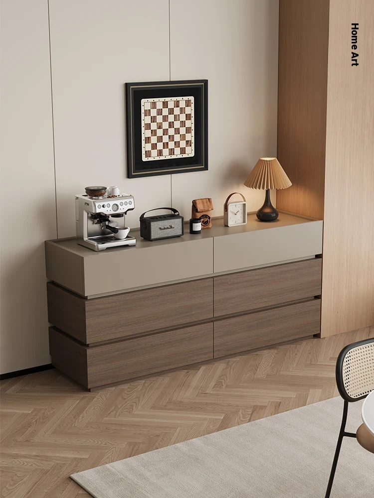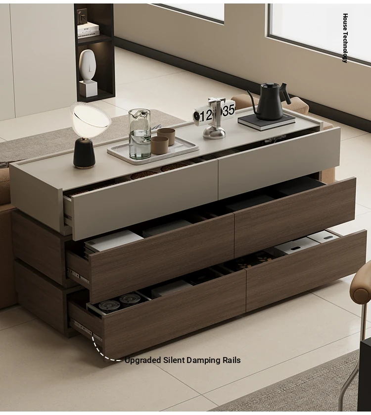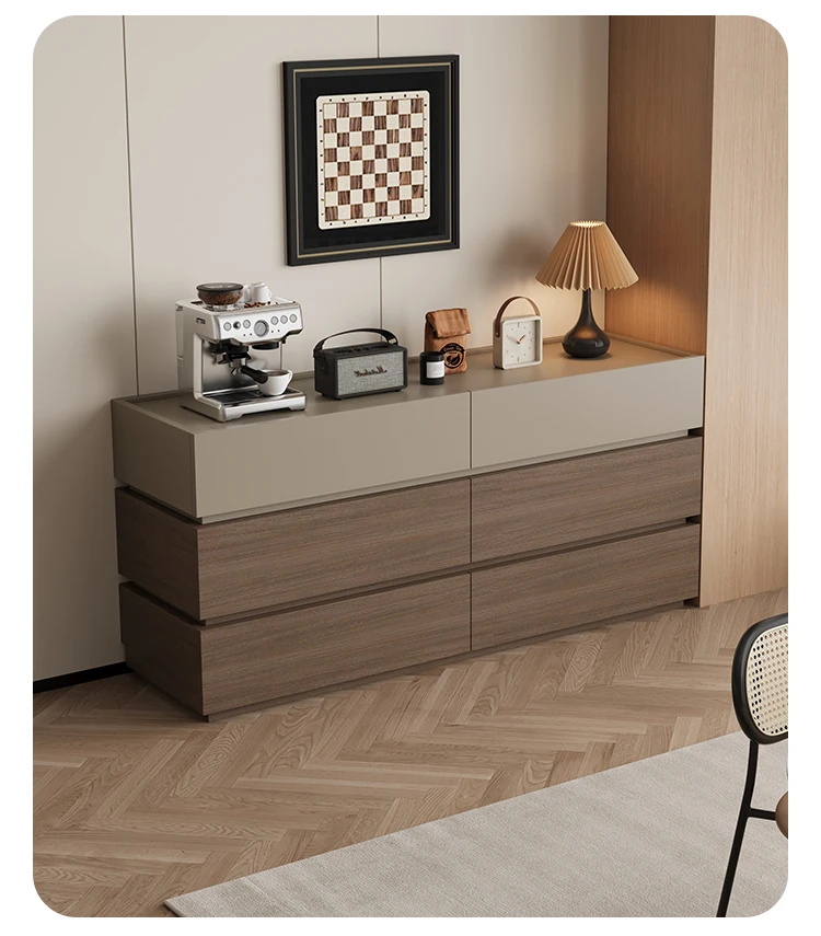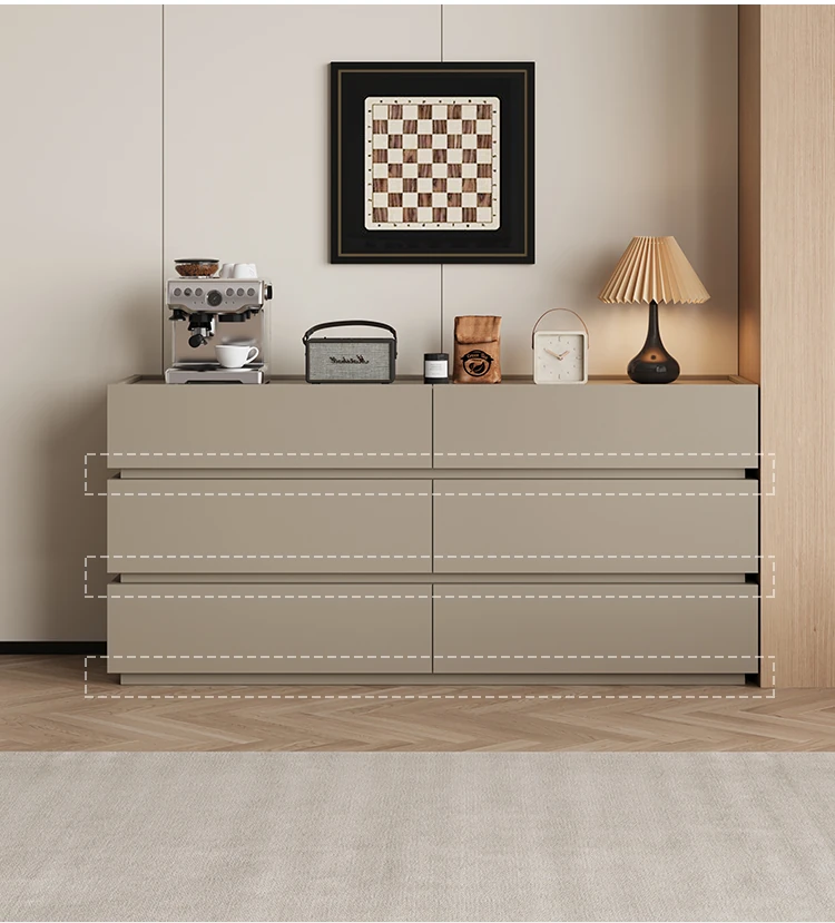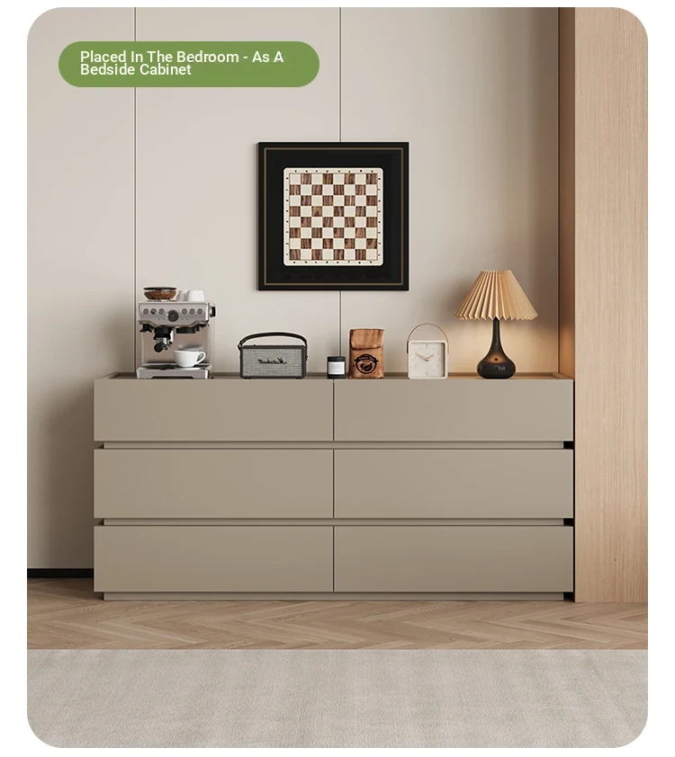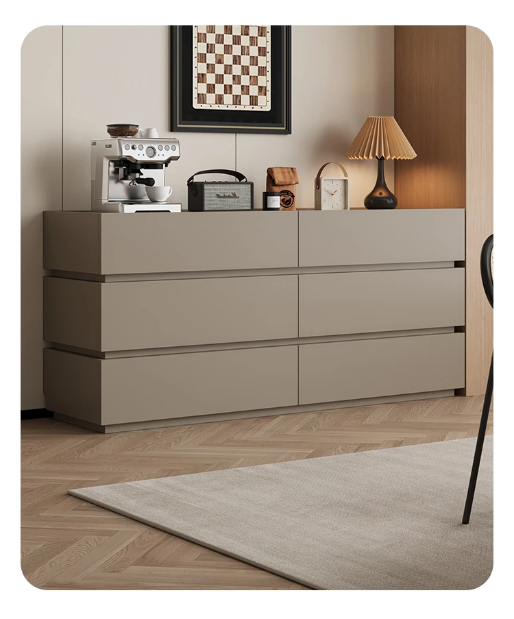 イタリアンミニマルデザインの6段チェスト - ベッドサイド収納、狭い部屋にも最適な実木製キャビネット。おしゃれで機能的なリビングの壁面収納!