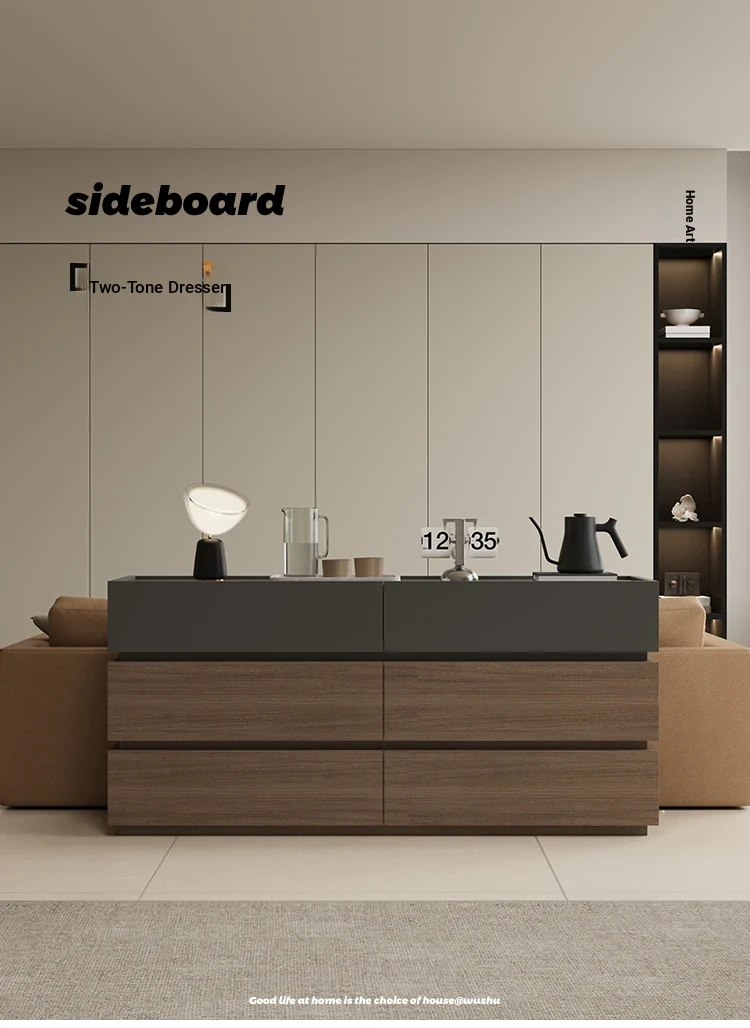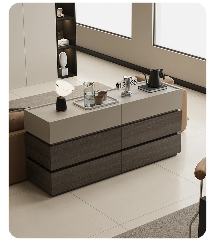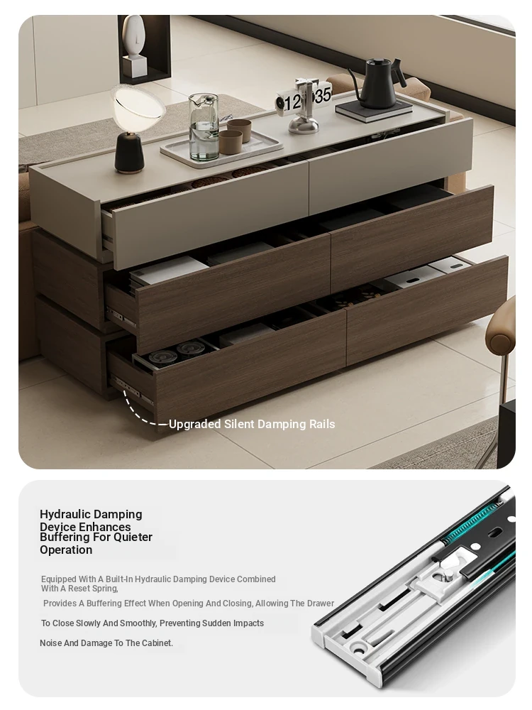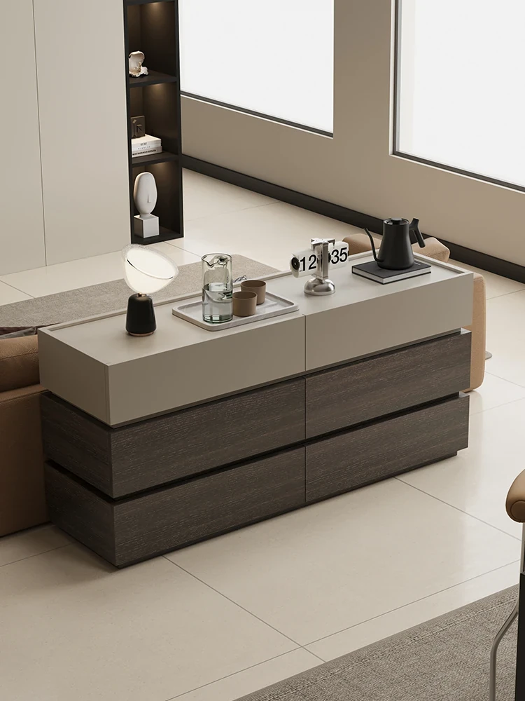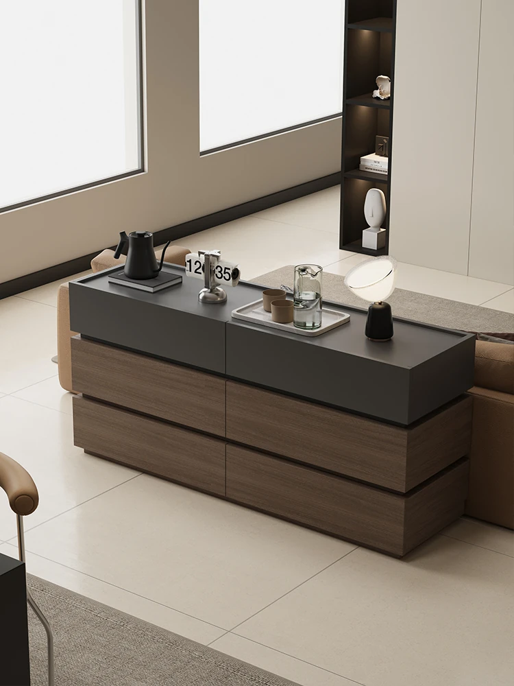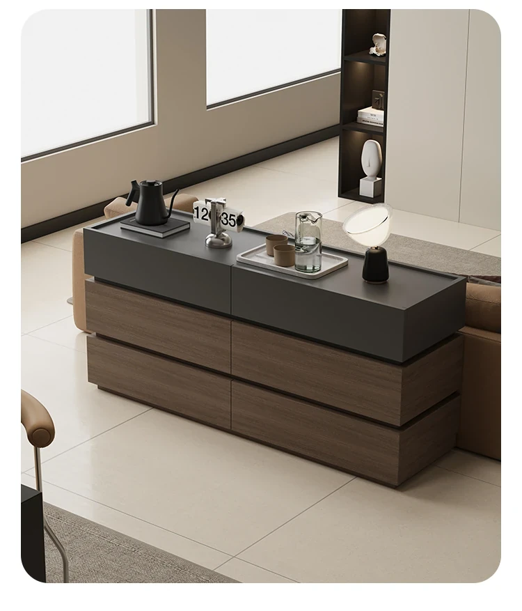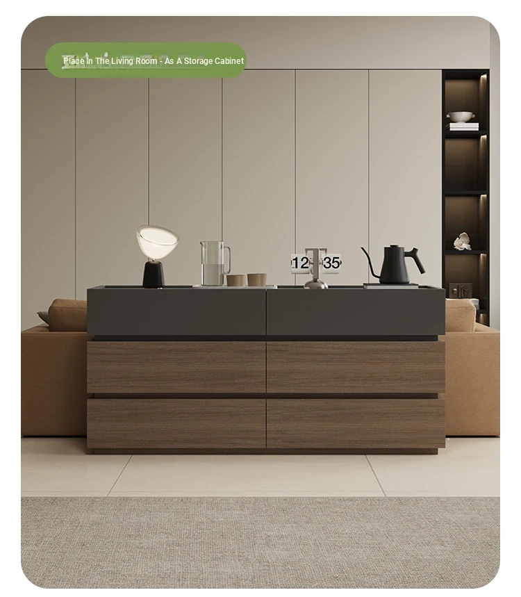 イタリアンミニマルデザインの6段チェスト - ベッドサイド収納、狭い部屋にも最適な実木製キャビネット。おしゃれで機能的なリビングの壁面収納!