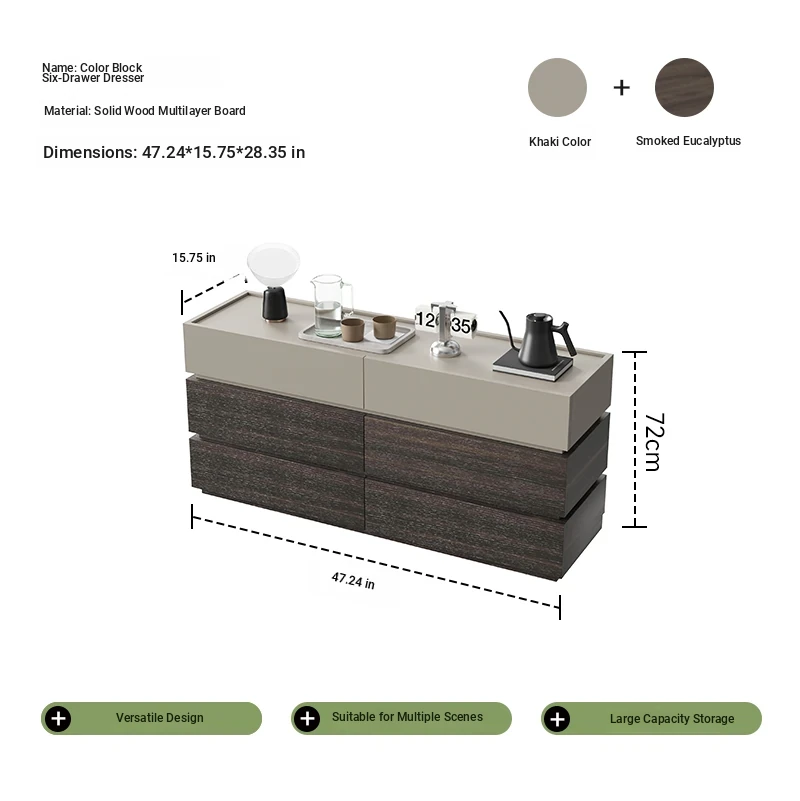 1.2メートル6引き出しチェスト@カーキ色+スモークユーカリ