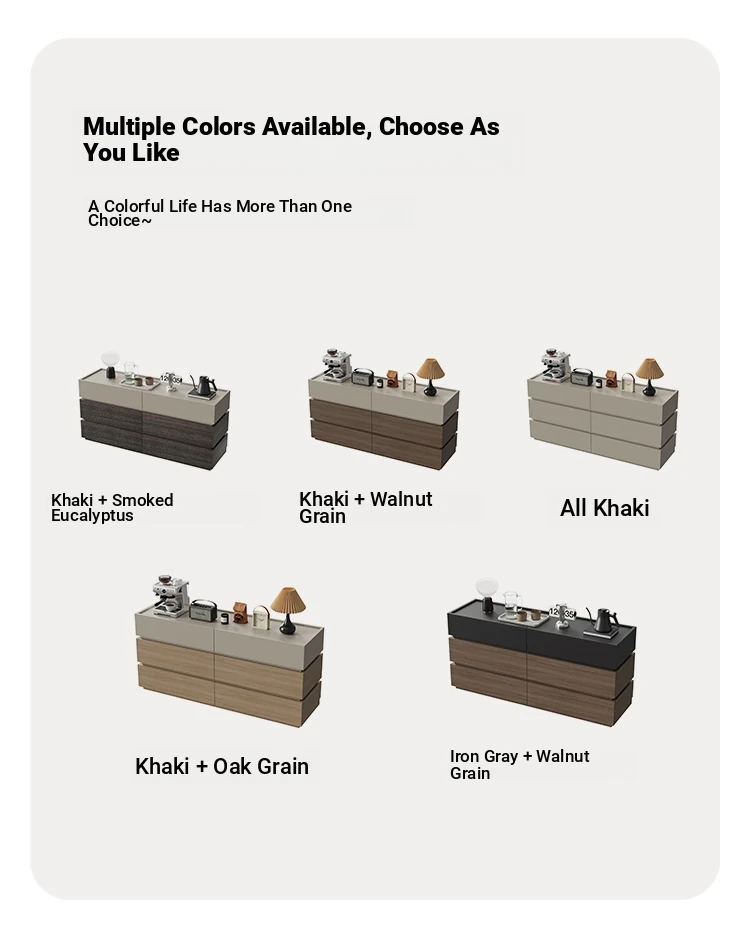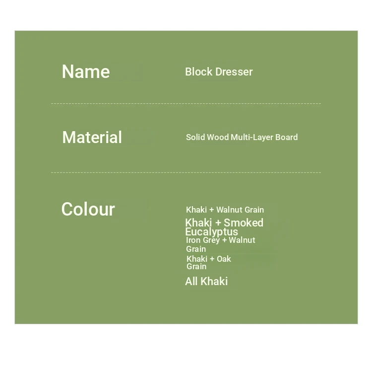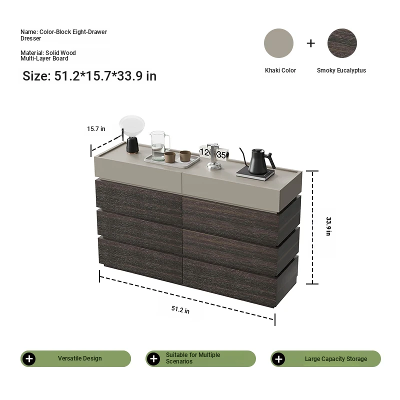1.2メートル8引き出しチェスト@カーキ色+スモークユーカリ