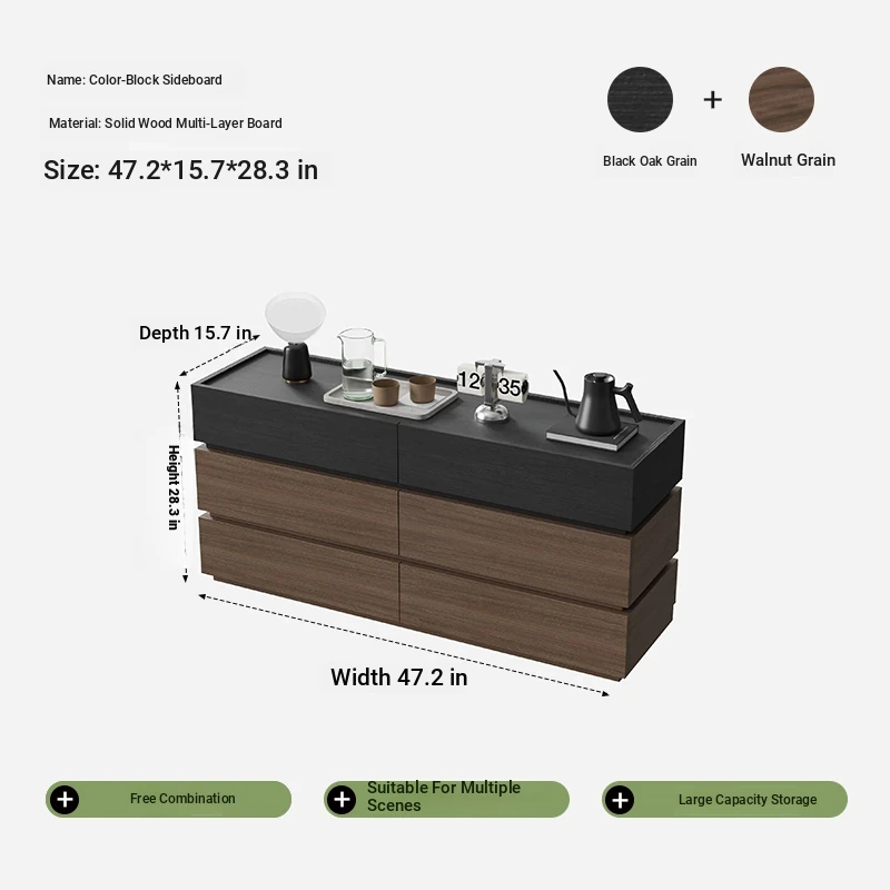 1.2メートル8引き出しチェスト@黒オーク木目+ウォールナット木目