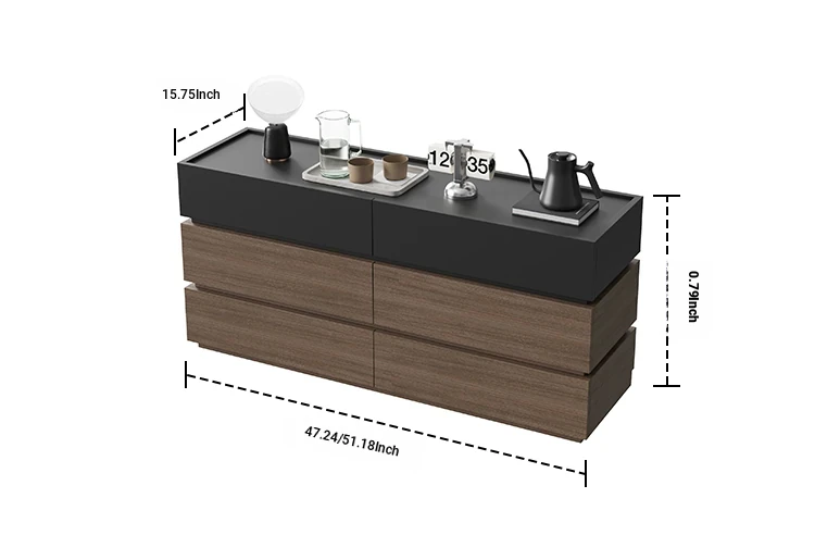 1.2メートル6引き出しチェスト@黒オーク木目+ウォールナット木目