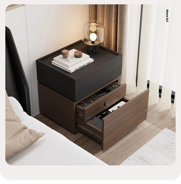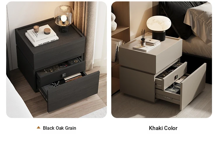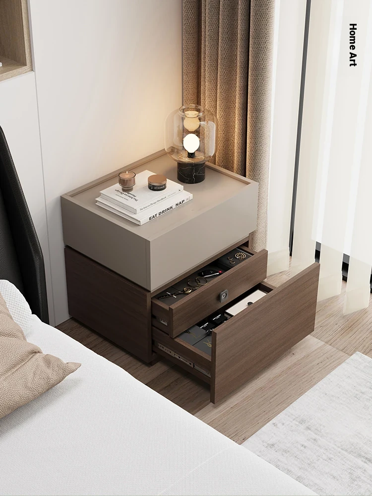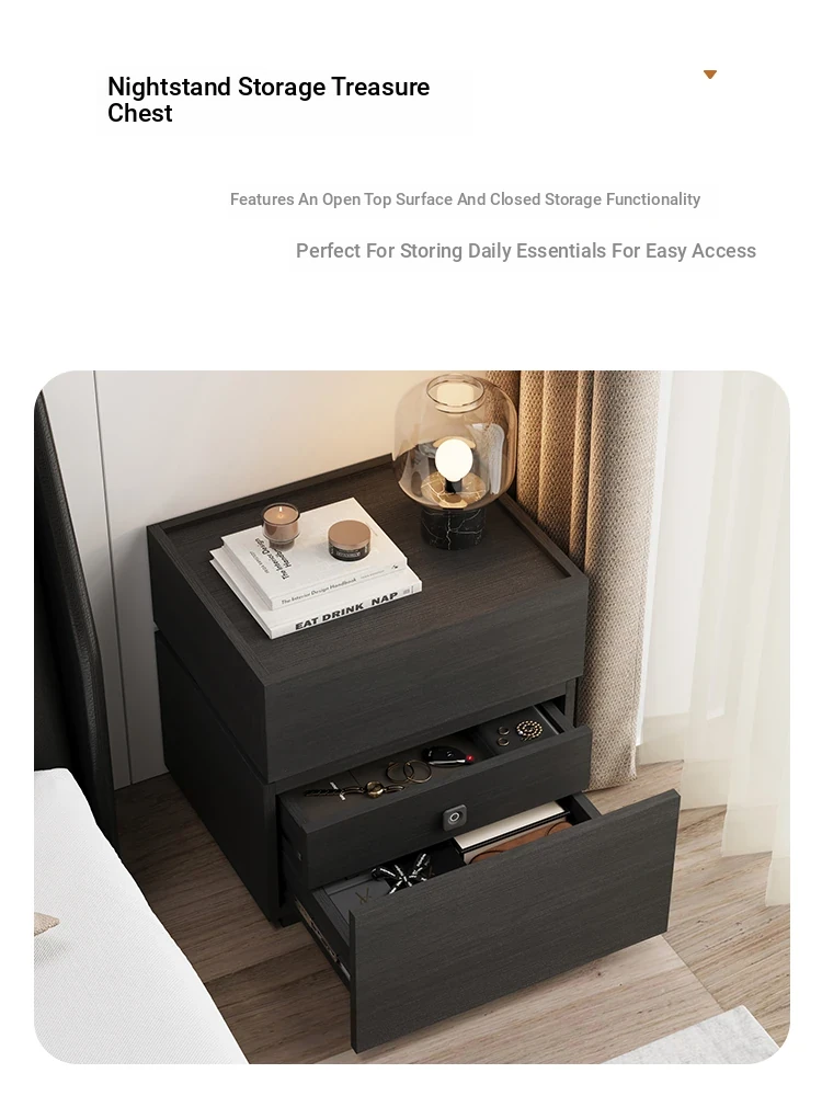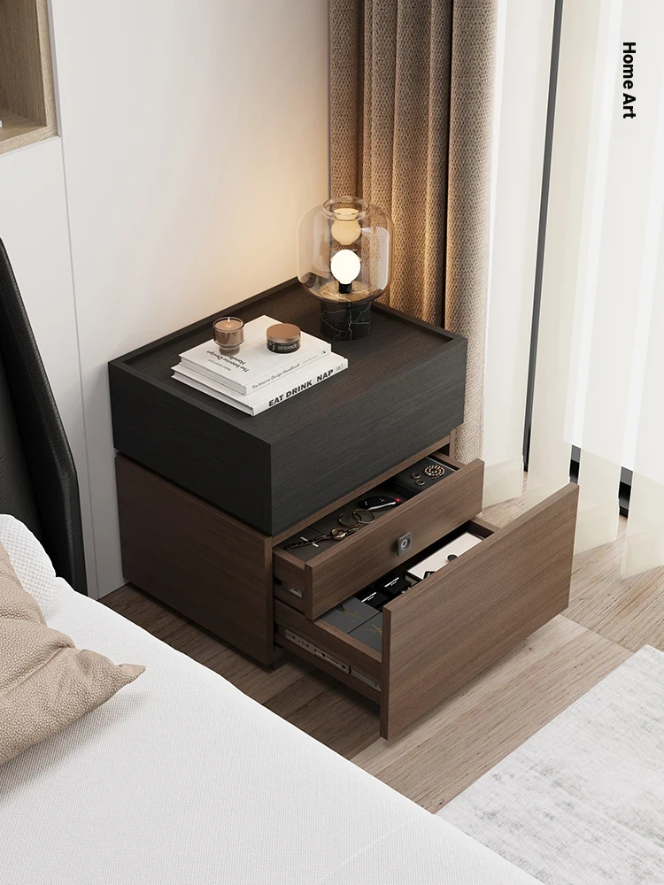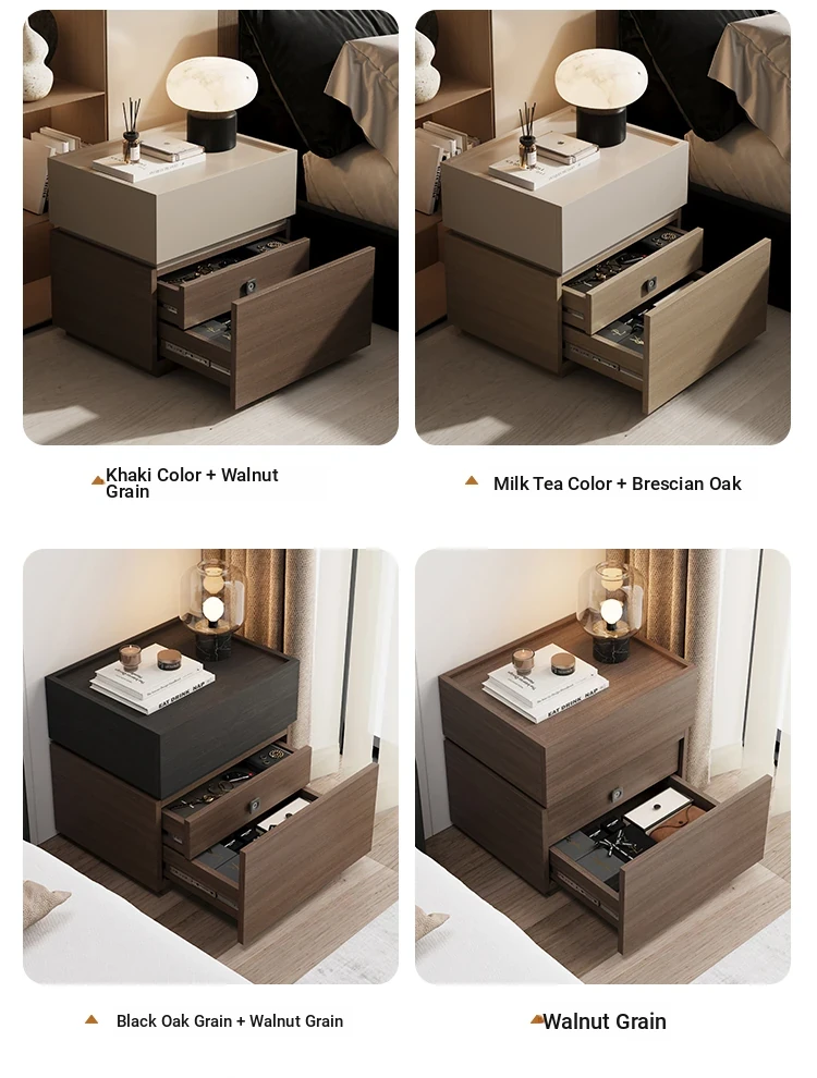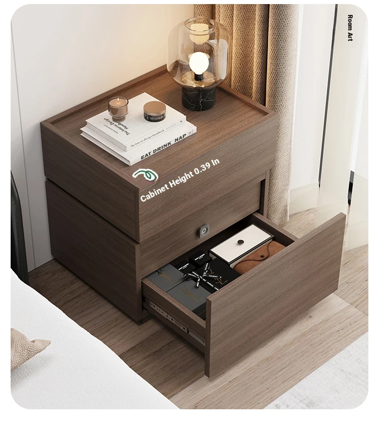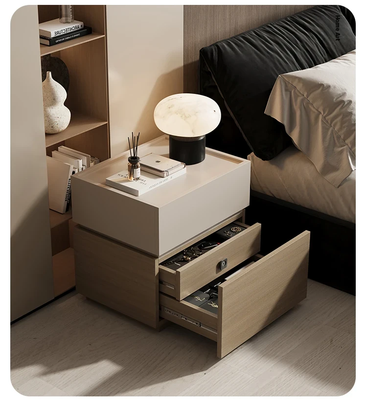 Minimalist Italian-Style Solid Wood Nightstand with Hidden Drawers - Sleek Bedroom Storage Cabinet for Smart Organization and Stylish Décor