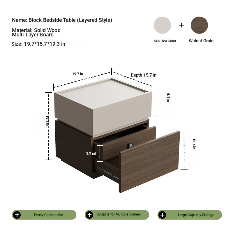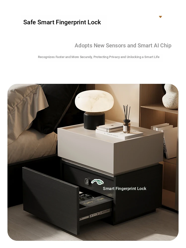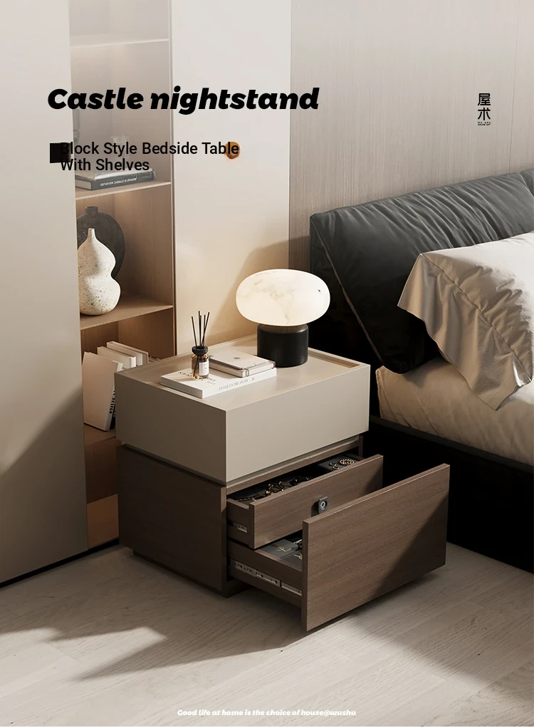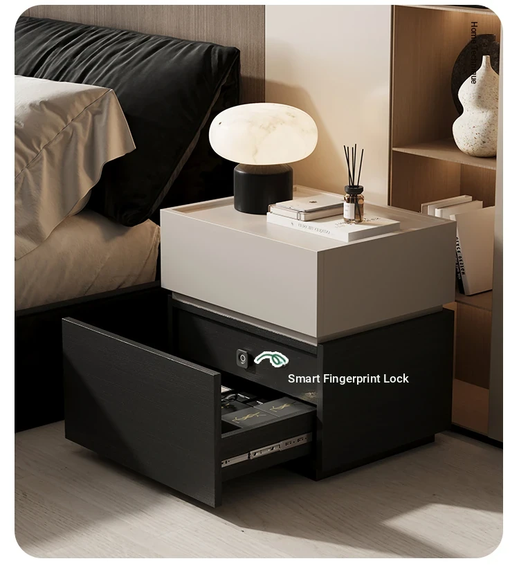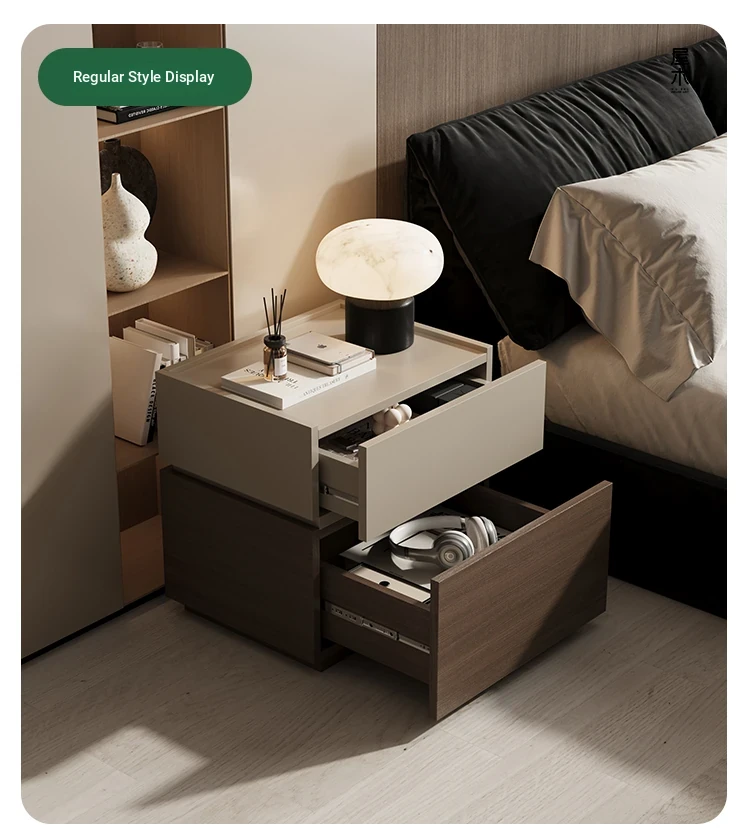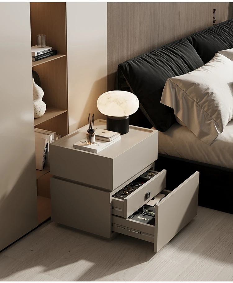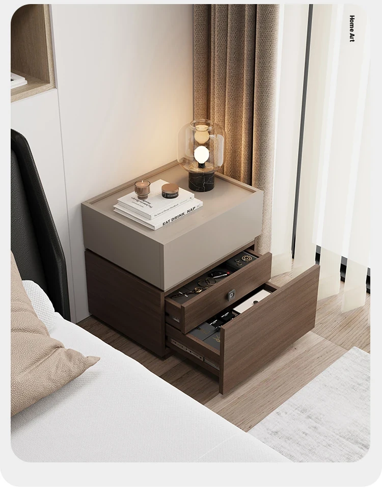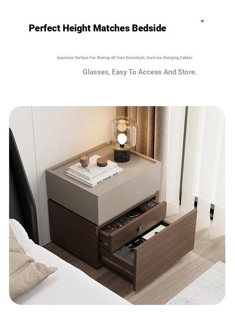 Minimalist Italian-Style Solid Wood Nightstand with Hidden Drawers - Sleek Bedroom Storage Cabinet for Smart Organization and Stylish Décor