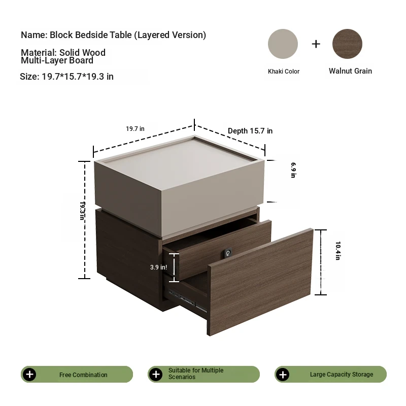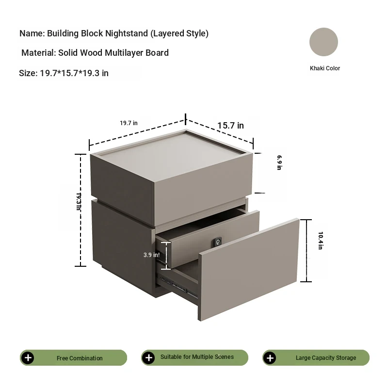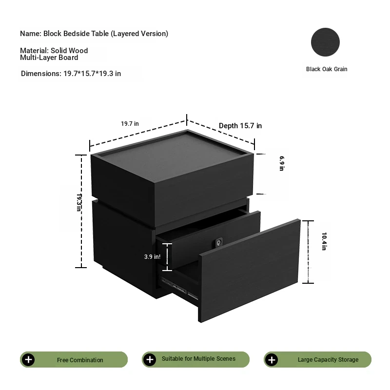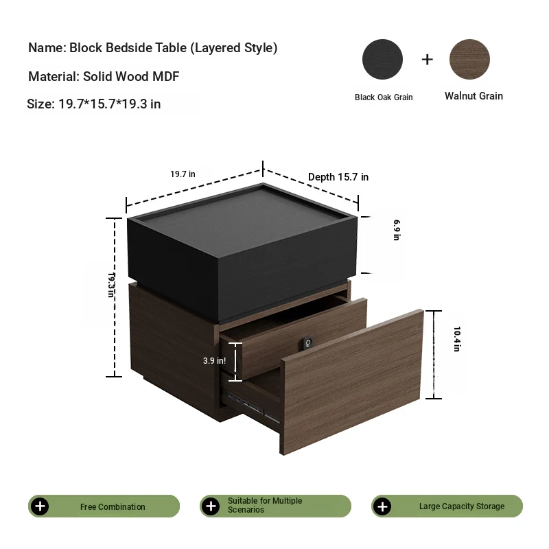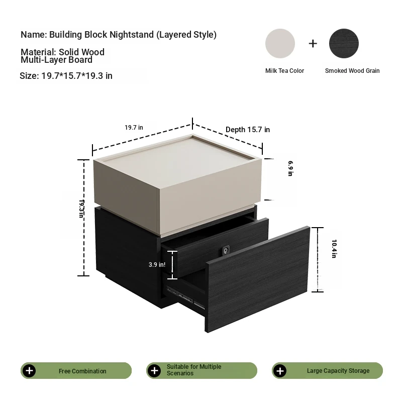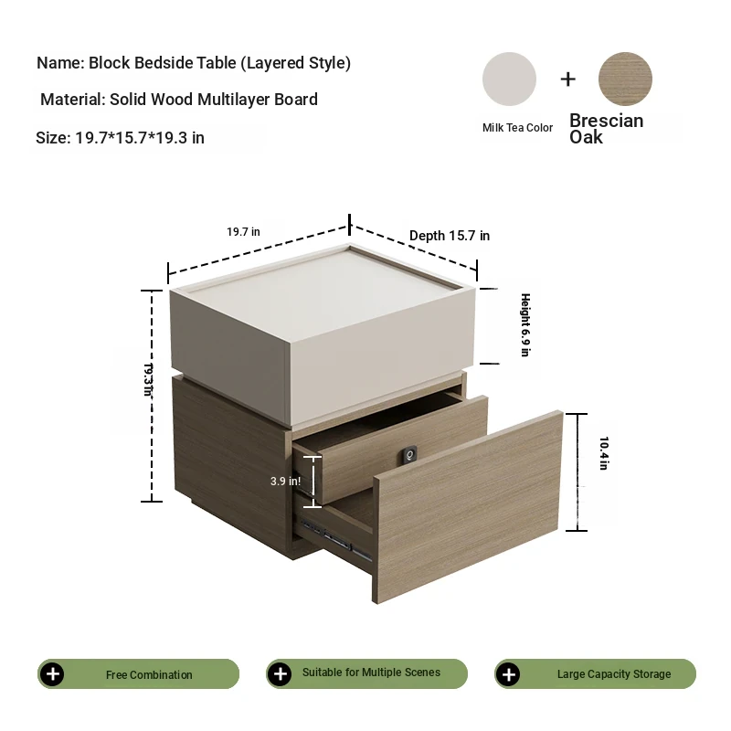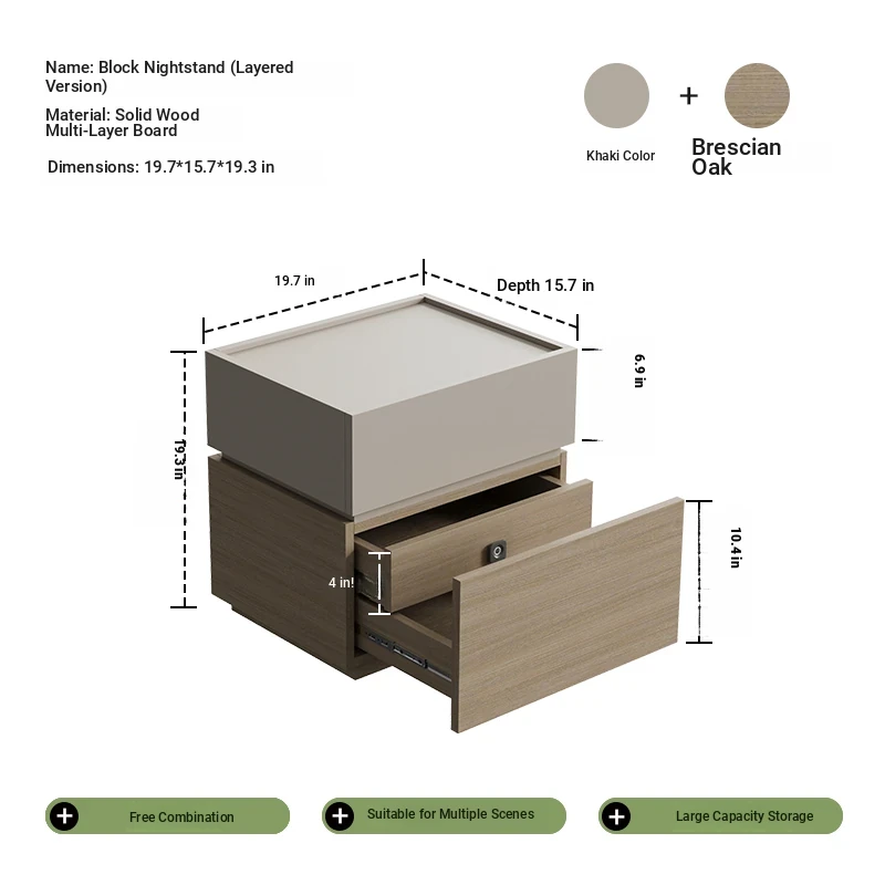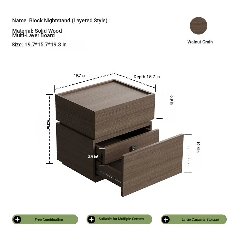 Minimalist Italian-Style Solid Wood Nightstand with Hidden Drawers - Sleek Bedroom Storage Cabinet for Smart Organization and Stylish Décor