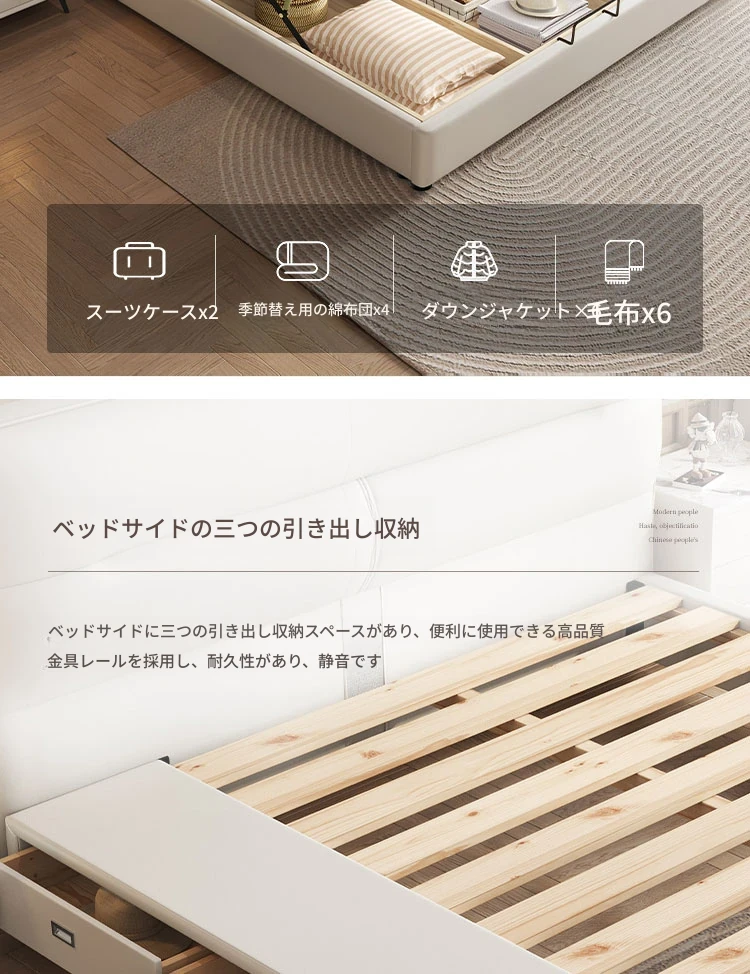 猫抓皮床+カシミヤ独立ポケットマットレス+2キャビネット(生地が快適、取り付け込み)