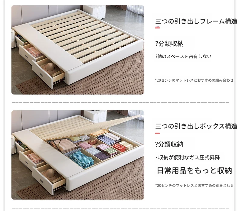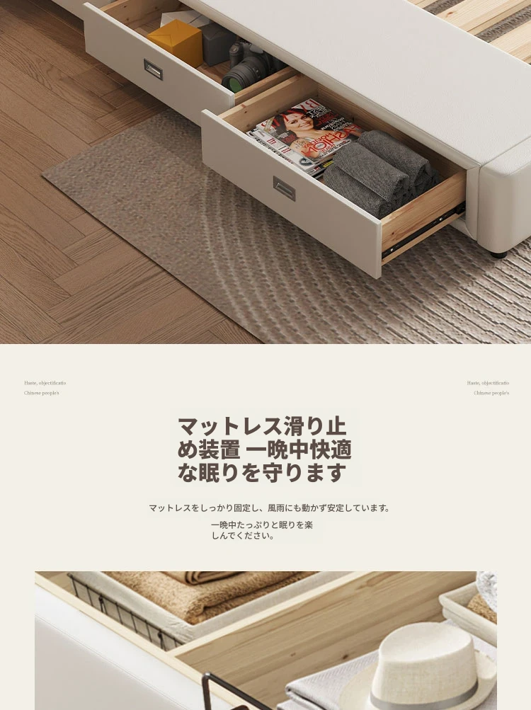 猫抓皮床+9分区5Dラテックスマットレス+2キャビネット(柔らかさと硬さのバランスが良い、取り付け込み)