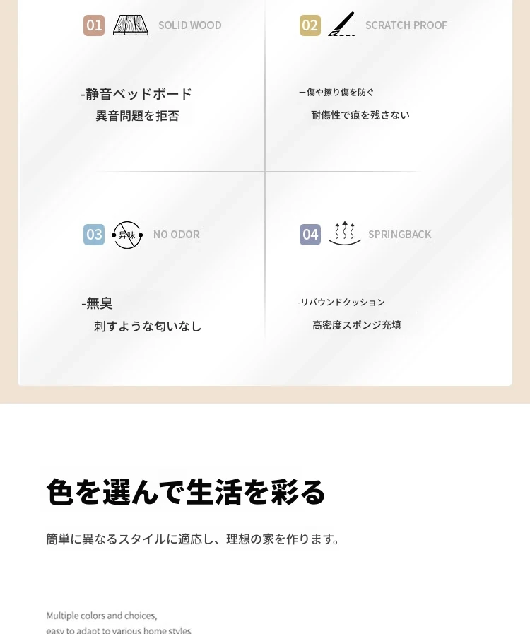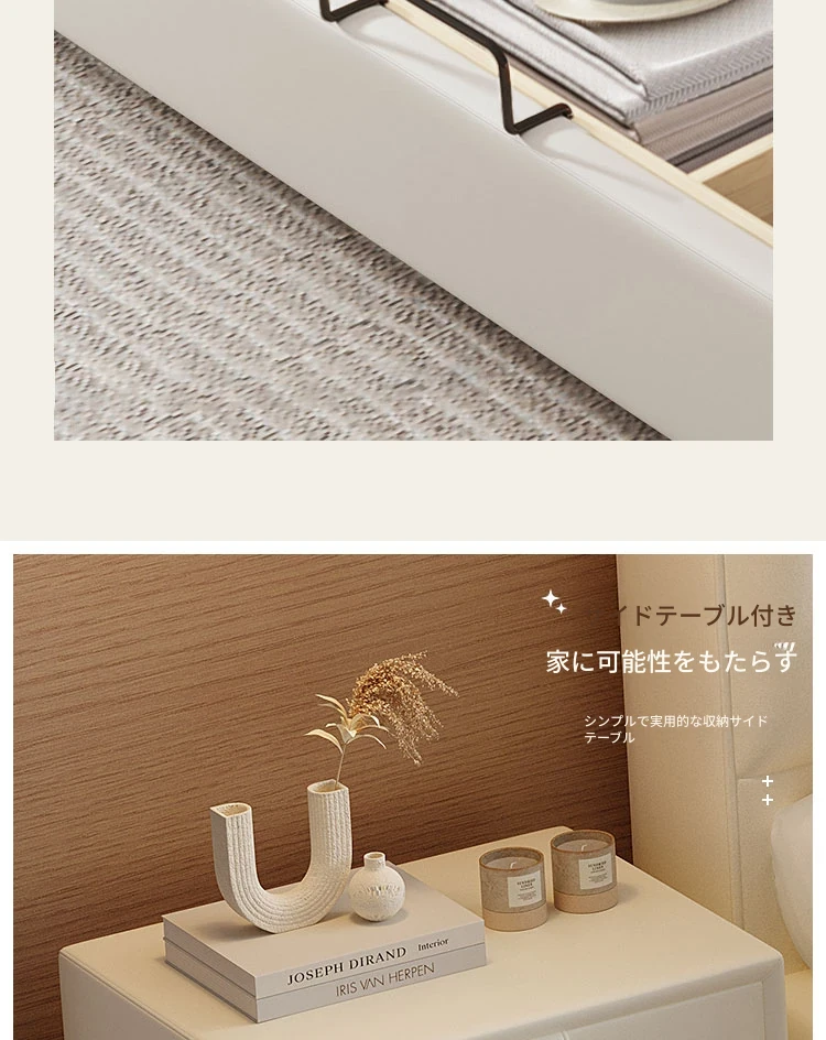 猫抓皮床+1キャビネット(無垢材静音ベッドボード)