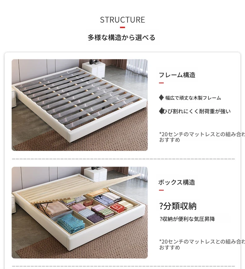猫抓皮床+カシミヤ独立ポケットマットレス(生地が快適、取り付け込み)