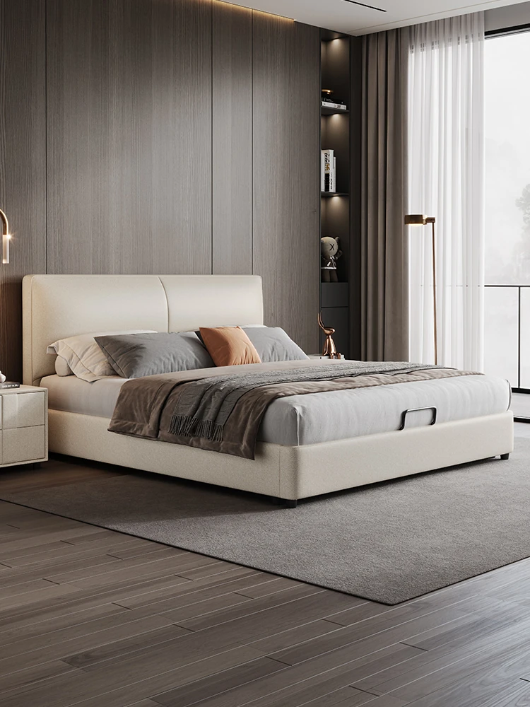 フランス風クリームカラーのモダンミニマリストダブルベッド|高級感溢れる本革製マスターベッド|魅力的な1.8m軽奢スタイルの皮革ベッド|新婚生活にぴったりの洗練されたデザイン!